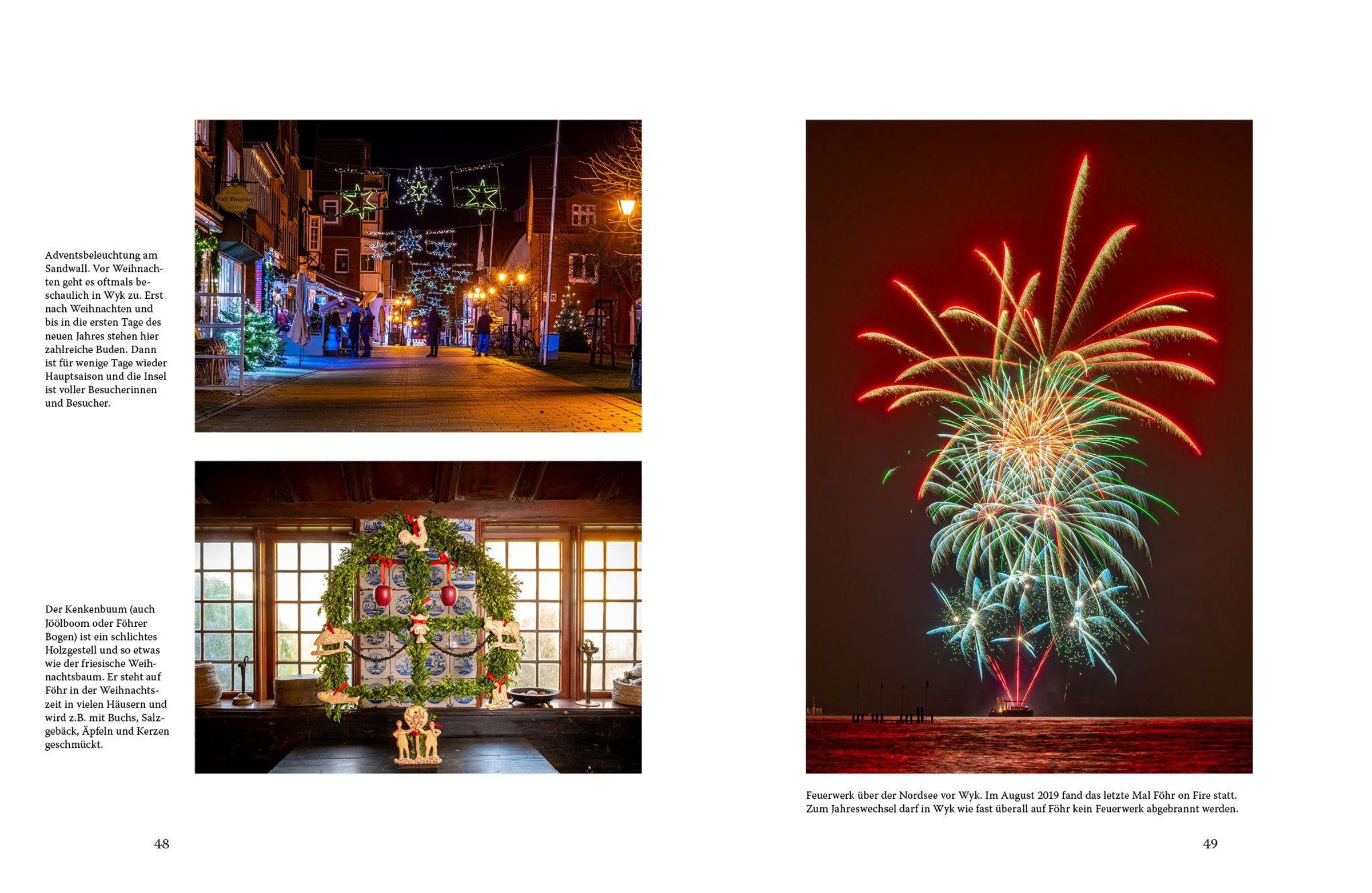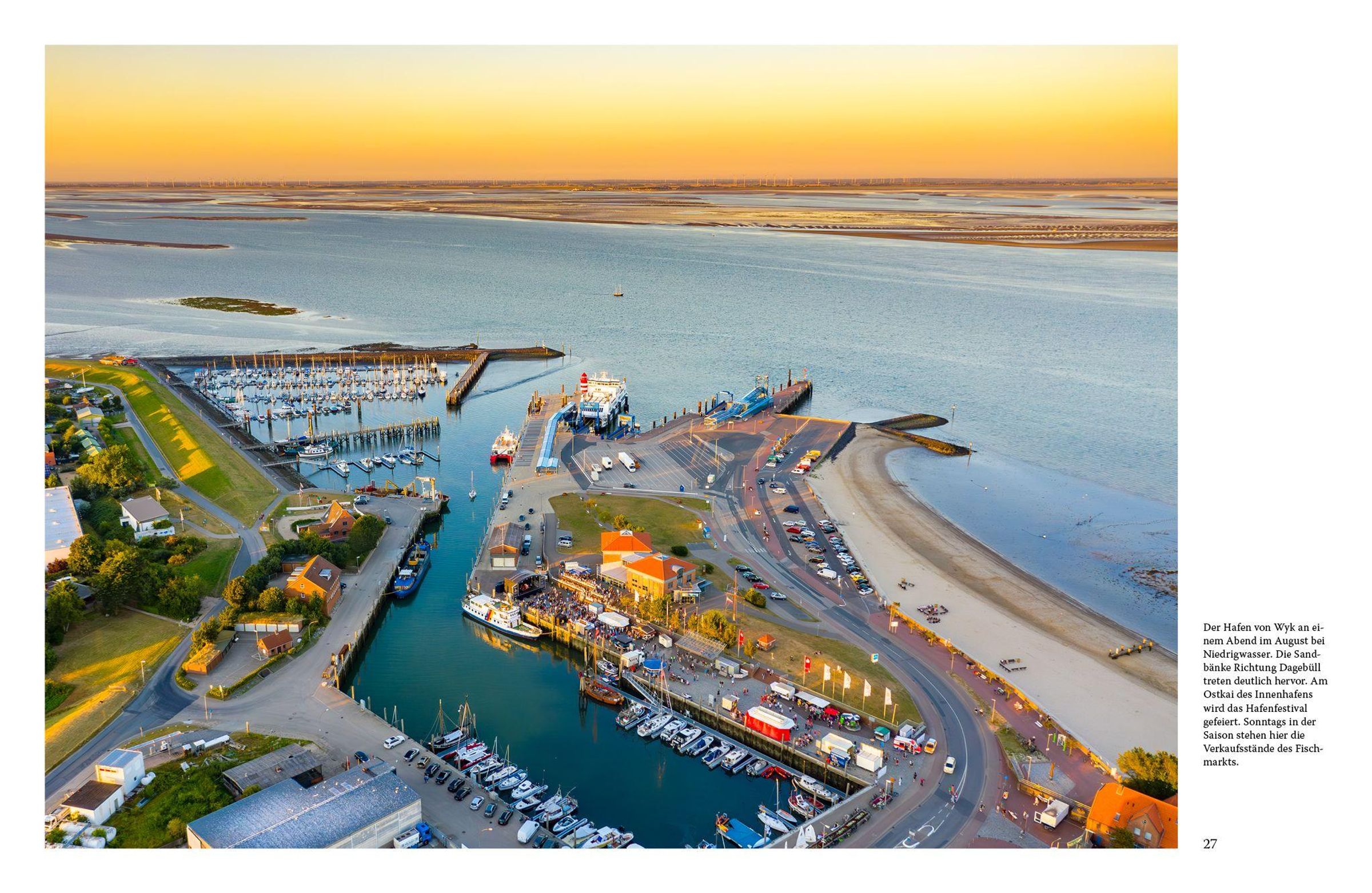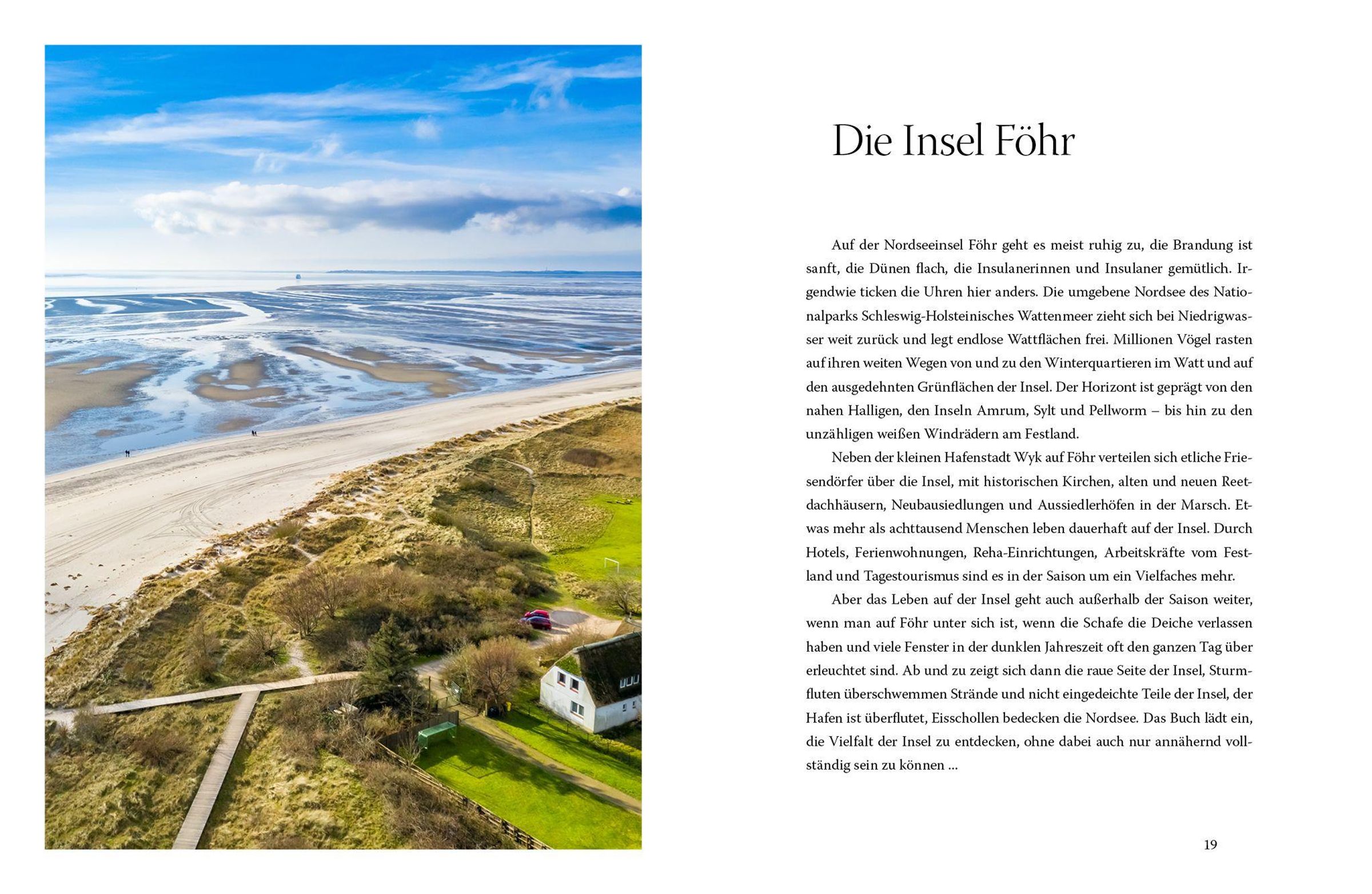 Auf der Nordseeinsel Föhr geht es meist ruhig zu, die Brandung ist sanft, die Dünen flach, die Insulanerinnen und Insulaner gemütlich. Irgendwie ticken die Uhren hier anders. Die umgebene Nordsee des Nationalparks Schleswig-Holsteinisches Wattenmeer zieht sich bei Niedrigwasser weit zurück und legt endlose Wattflächen frei. Millionen Vögel rasten auf ihren weiten Wegen von und zu den Winterquartieren im Watt und auf den ausgedehnten Grünflächen der Insel. Der Horizont ist geprägt von den nahen Halligen, den Inseln Amrum, Sylt und Pellworm - bis hin zu den unzähligen weißen Windrädern am Festland. Neben der kleinen Hafenstadt Wyk auf Föhr verteilen sich etliche Friesendörfer über die Insel, mit historischen Kirchen, alten und neuen Reetdachhäusern, Neubausiedlungen und Aussiedlerhöfen in der Marsch. Etwas mehr als achttausend Menschen leben dauerhaft auf der Insel. Durch Hotels, Ferienwohnungen, Reha-Einrichtungen, Arbeitskräfte vom Festland und Tagestourismus sind es in der Saison um ein Vielfaches mehr. Aber das Leben auf der Insel geht auch außerhalb der Saison weiter, wenn man auf Föhr unter sich ist, wenn die Schafe die Deiche verlassen haben und viele Fenster in der dunklen Jahreszeit oft den ganzen Tag über erleuchtet sind. Ab und zu zeigt sich dann die raue Seite der Insel, Sturmfluten überschwemmen Strände und nicht eingedeichte Teile der Insel, der Hafen ist überflutet, Eisschollen bedecken die Nordsee. Das Buch lädt ein, die Vielfalt der Insel zu entdecken, ohne dabei auch nur annähernd vollständig sein zu können ...