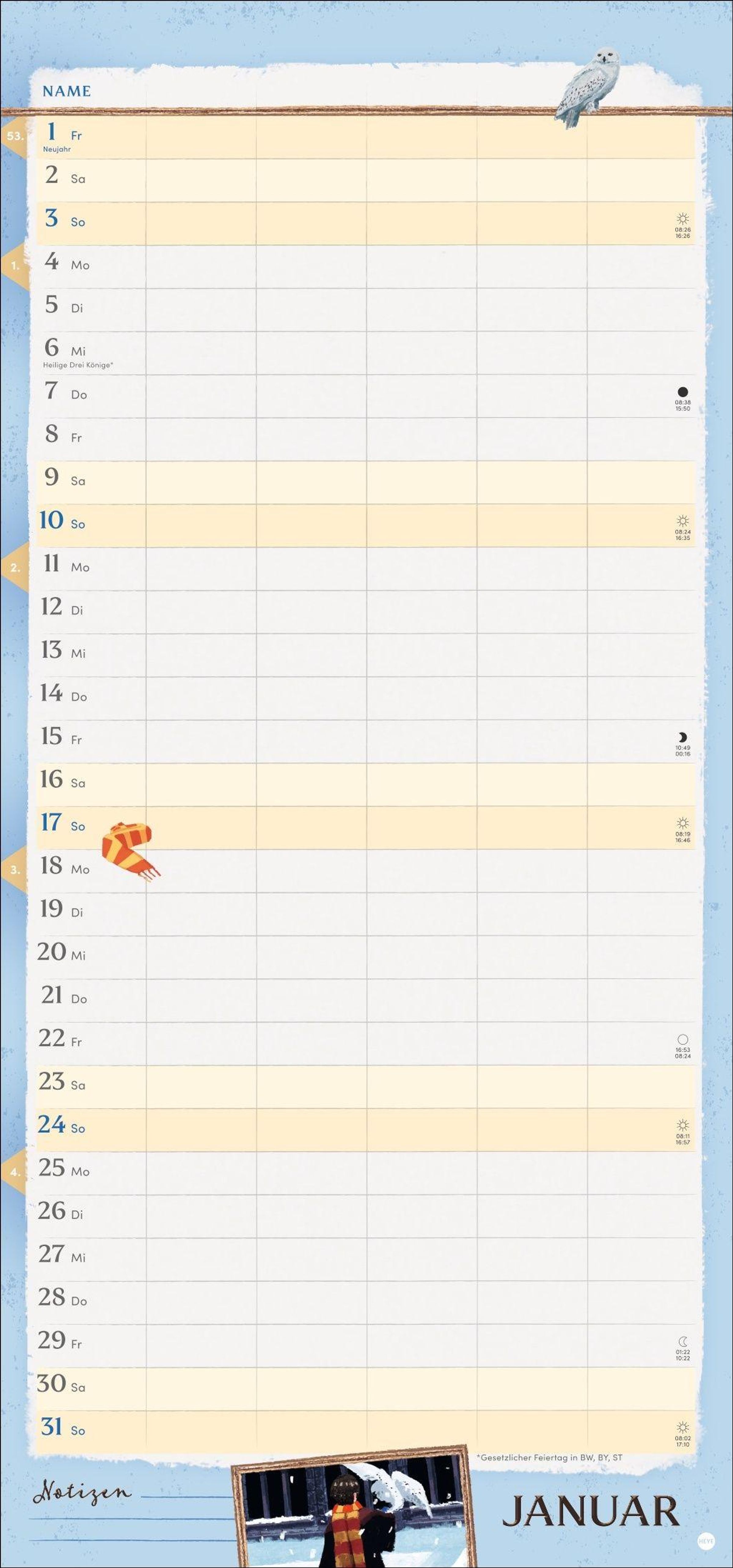 - Magisch viel Überblick über Schulferien, Termine und To-Dos. Familienkalender mit 5 Spalten im Format 21 x 45 cm für große und kleine Hogwarts-Fans