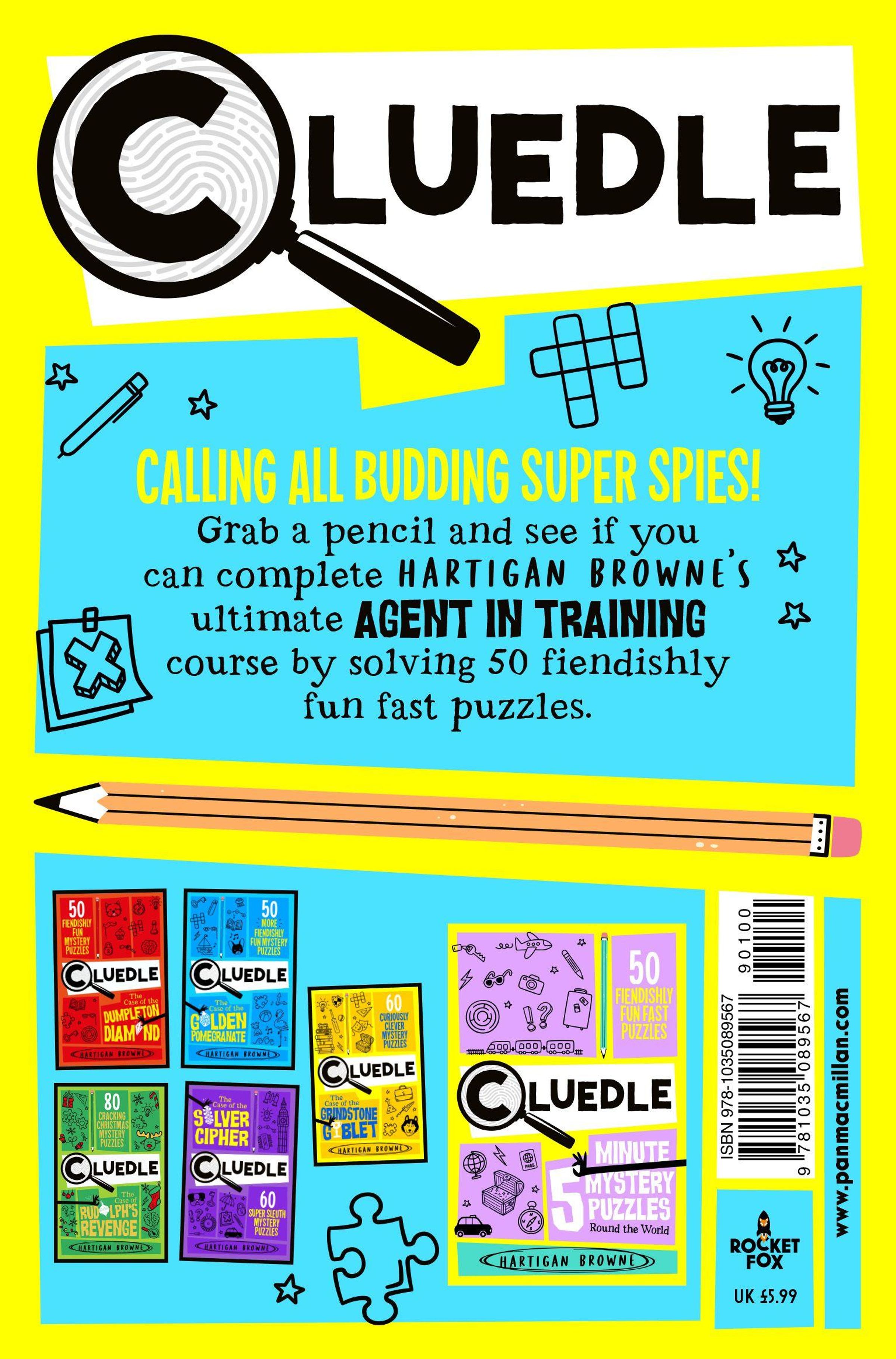 Packed full of evidence to evaluate, clues to unravel and codes to crack in five minutes or less, Cluedle - 5 Minute Mystery Puzzles: Agent in Training is the perfect activity book to keep children entertained on the go.