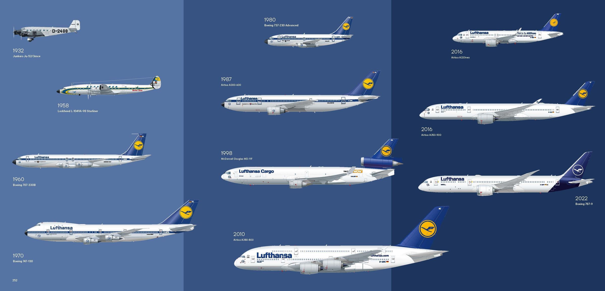 - Erstmalige Gesamtdarstellung der Geschichte der Lufthansa seit der Gründung 1926, mit zahlreichen Abbildungen, Vintage-Werbematerialien und internen Dokumenten