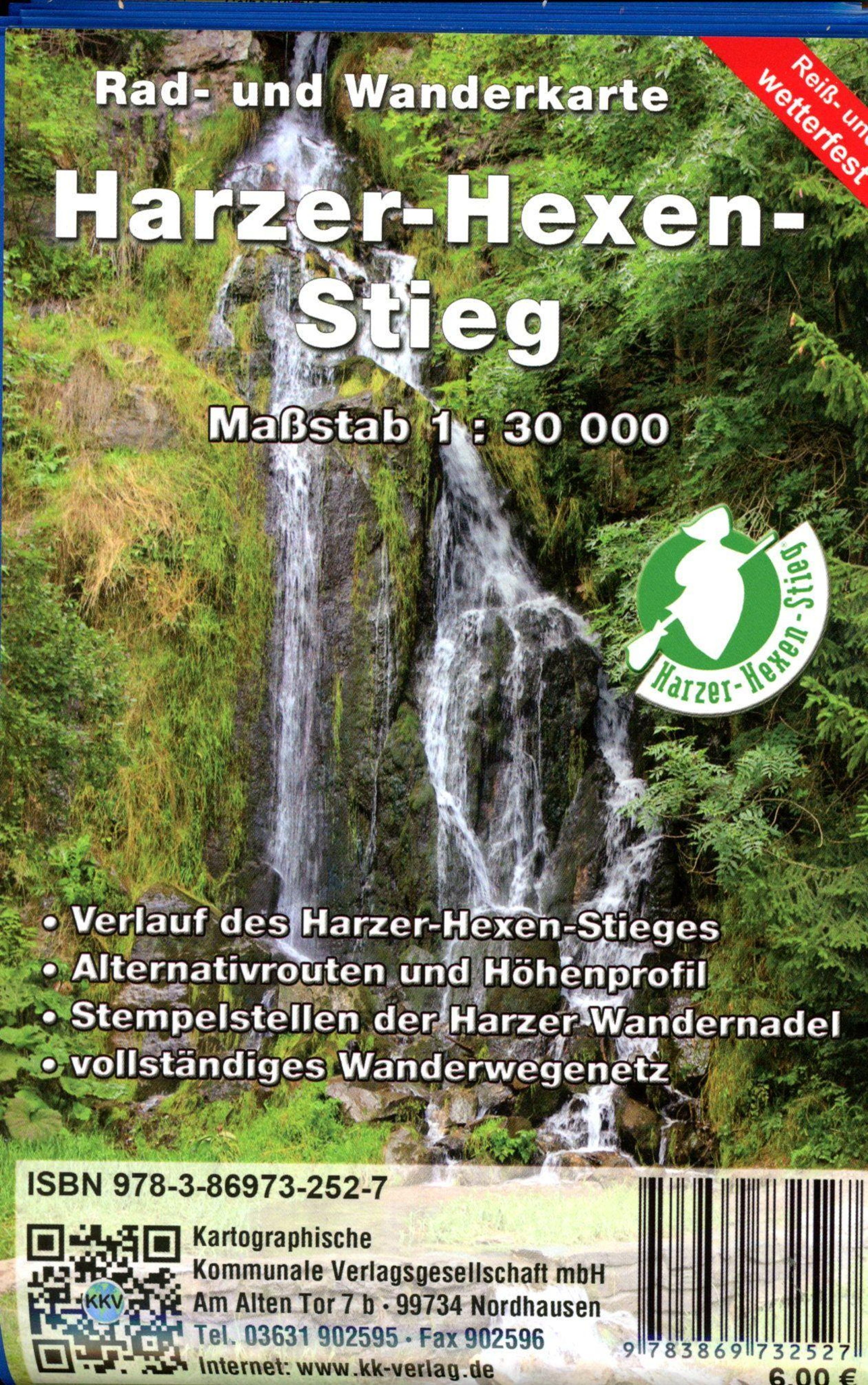 Der ca. 100 km lange Harzer-Hexen-Stieg führt von Osterode über den Brocken nach Thale. Er ist mit 28 Stempelstellen und einem eigenem Themenwanderzeichen in das System der Harzer Wandernadel eingebunden. Der als Qualitätswanderweg zertifizierte Wanderweg zeigt dem Wanderer die ganze Schönheit des Harzes. Ob Mischwälder, Nadelwälder, Bergwiesen, leise plätschernde Bäche, steil aufragende Klippen oder majestätische Talsperren auf dem Harzer-Hexen-Stieg erleben Sie die Abwechslung der Natur. Rauchende Holzmeiler oder die schmalen Gräben des "Oberharzer Wasserregals" lassen die tausendjährige Geschichte des Bergbaus im Harz wieder aufleben. Die neue, wetterfeste Wanderkarte des Harzer-Hexen-Stieges stellt die gesamte Region des Hexenstieges von Osterode bis Thale mit den beiden alternativ Routen in Altenau und Braunlage im übersichtlichen Detailmaßstab 1: 30 000 vor. Die vollständige Darstellung des Wanderwegenetzes des Harzklubs erleichtert dabei die Orientierung und macht die Karte zu einem unverzichtbaren Begleiter. Die zusätzliche Darstellung der Radwege gibt den Freunden des Radsports eine gute Orientierung. Ein UTM-Gitters ermöglicht die Nutzung eines GPS-Gerätes.