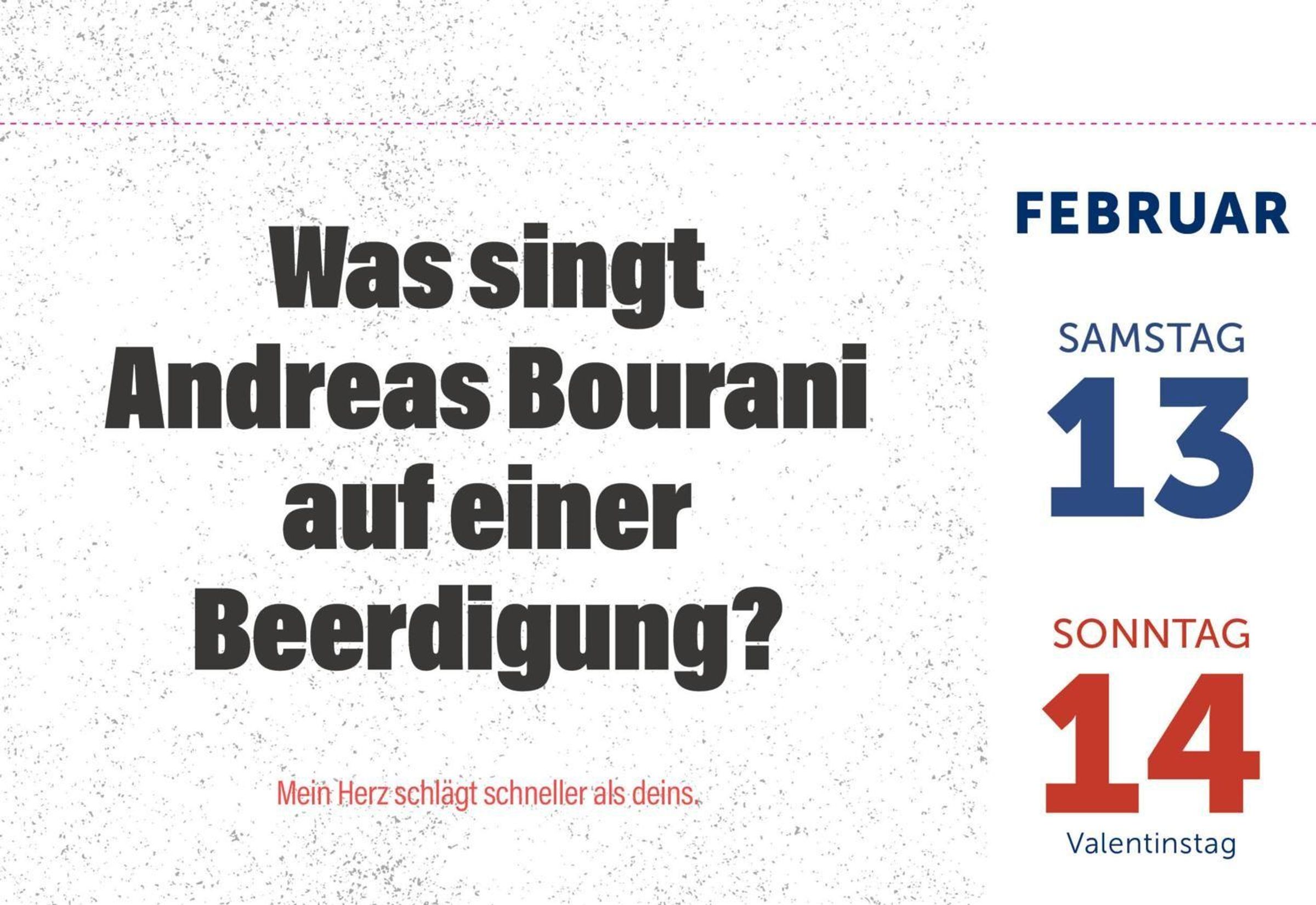 Sechs Mal die Woche bietet dieser Tagesabreißkalender einen neuen Flachwitz für alle mit katastrophalem Humor und Menschen, die andere mit absurden Pointen gerne zum Lachen bringen. Mit stabiler Aufstellvorrichtung, klaren Datumsangaben und farblich markierten Feiertagen ist dieser Kalender ein echtes Highlight im Büro und zuhause.