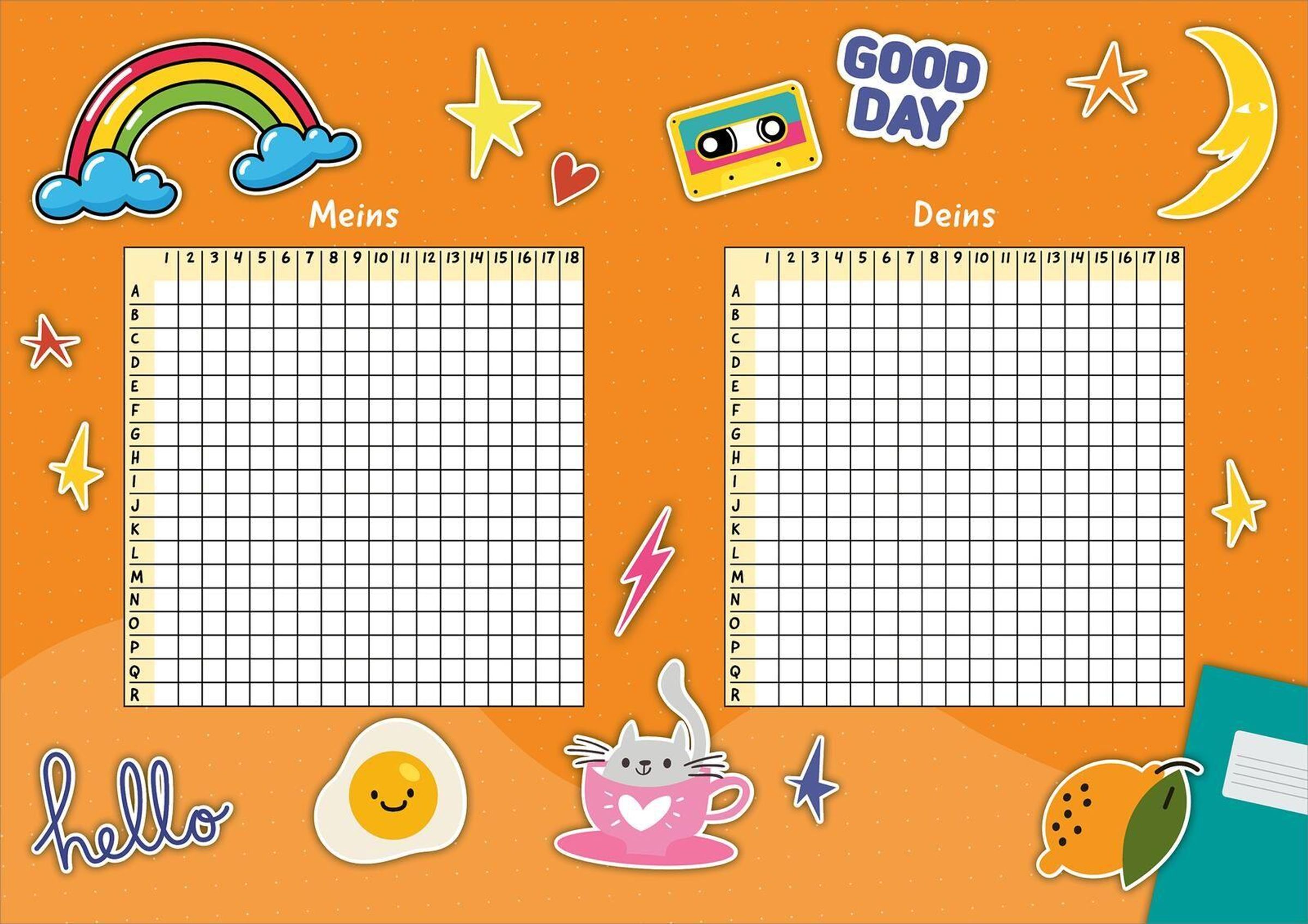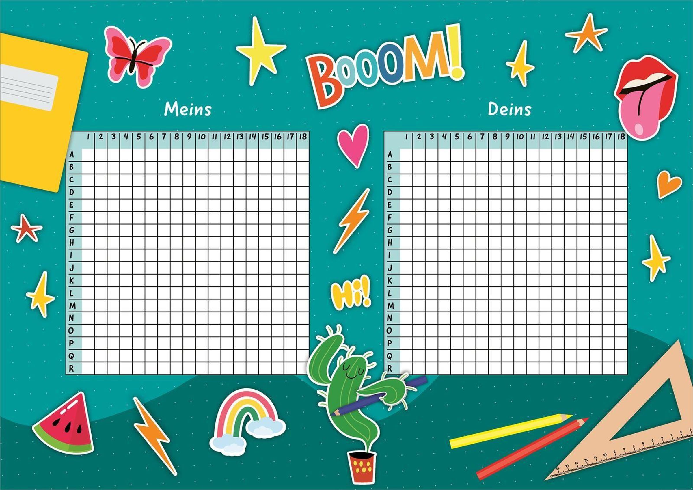 In diesem Block finden sich über 90 Vorlagen mit vielen verschiedenen lustigen Szenen! Das Spielprinzip ist das gleiche wie bei dem Spieleklassiker "Schiffe versenken"!