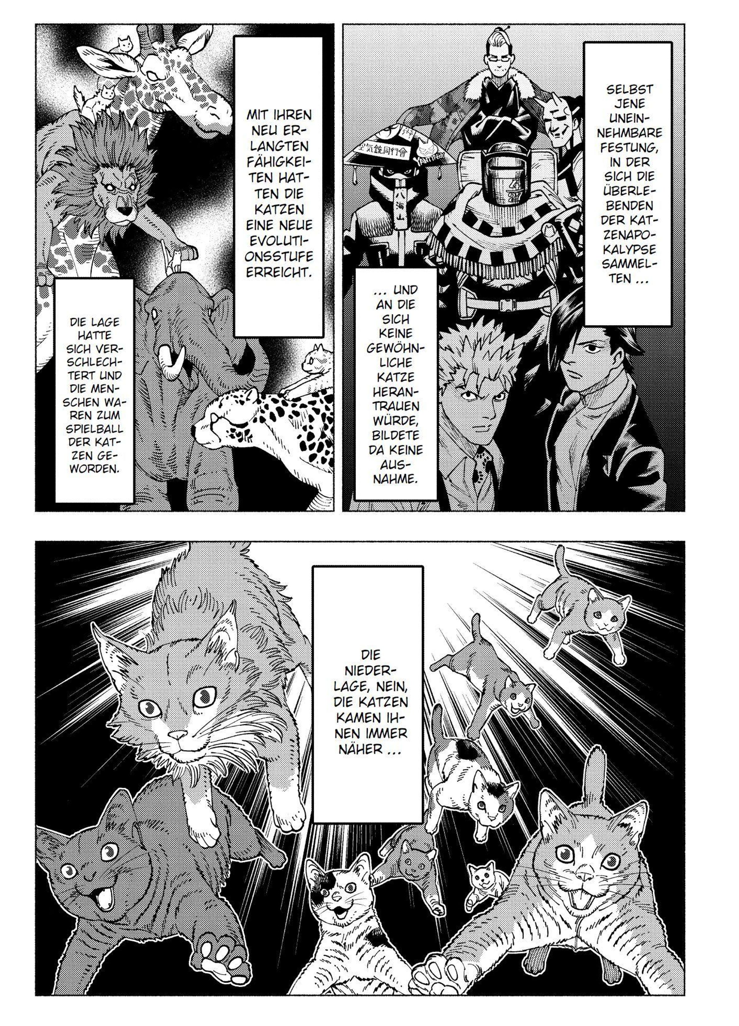NIGHT OF THE LIVING CAT ist eine humorvolle und absurde Mangavariante der Zombie-Apokalypse! In dieser Story wird die Menschheit durch ein Virus in wilde, sabbernde und pelzige Bestien verwandelt: Katzen. Die wenigen menschlich gebliebenen Überlebenden müssen sich gegen die Katzenhorde zur Wehr setzen.