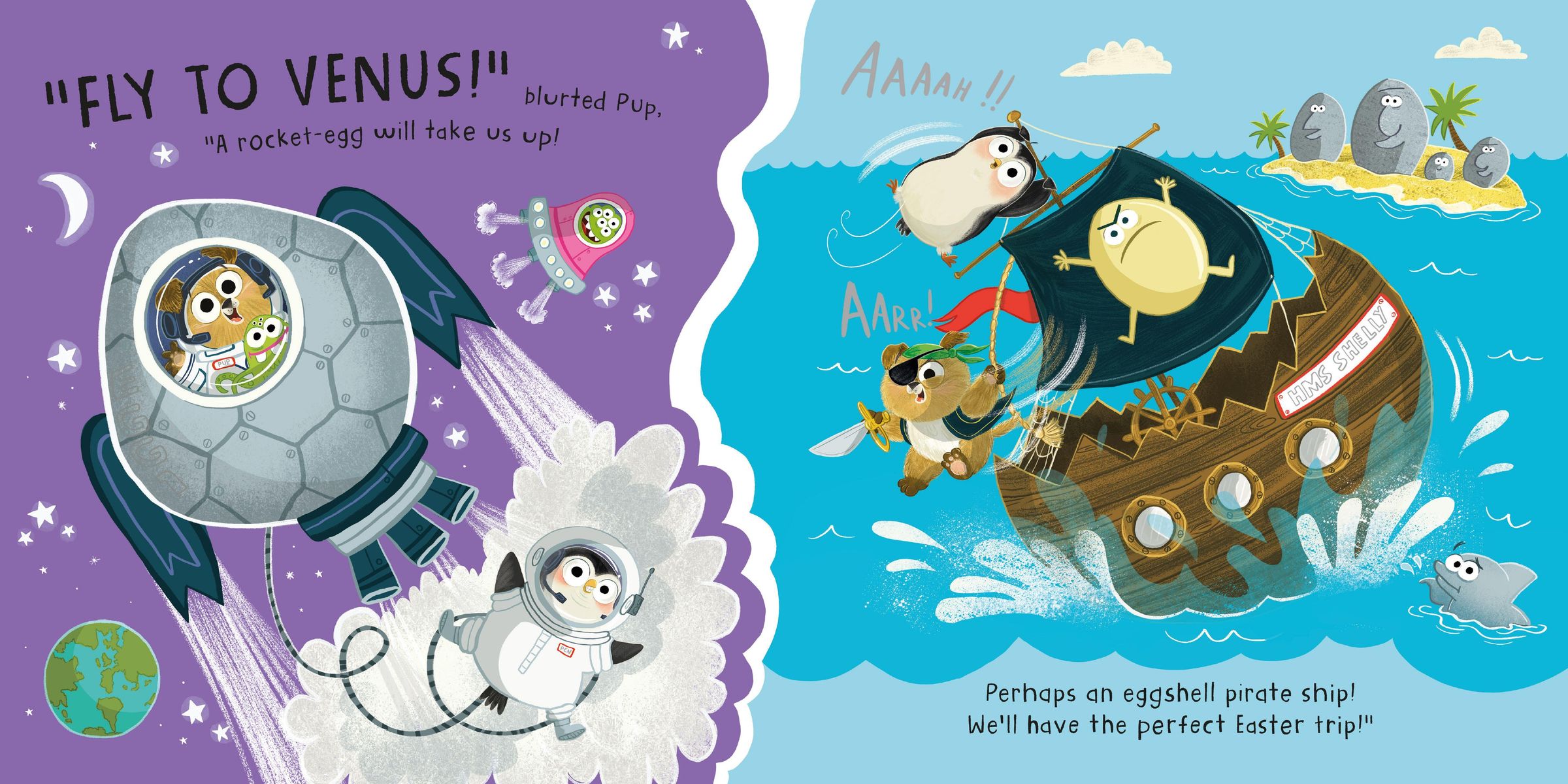 Like lots of friends, Penguin and Pup like VERY different things. Especially when it comes to Easter. All Penguin wants is a perfectly sized chocolate egg to enjoy in the garden. Pup, on the other hand, is thinking: why stop there? What about a Rocket Egg , or an Eggshell Pirate Ship ? It's a recipe for disaster, and lots of laughter.