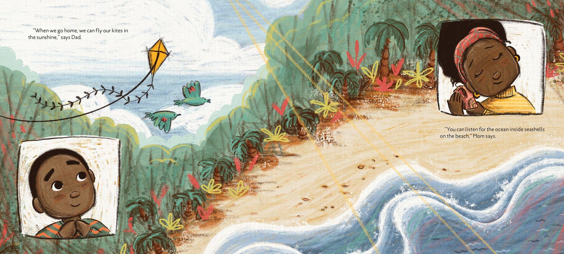 Heather Beaumont's poetic story portrays an experience that many children with family heritage in another country or culture can relate to, and it affirms the experience in loving detail. The book's expressive, rhythmic text, using the refrain "when we go home," and the rich, vibrant art by Nátali de Mello make it an excellent read-aloud choice. Perfect to spark meaningful discussions about what home can be, it highlights for young children what a treasure it is to have a family and a place - or two - that feels like home. The book also lovingly captures aspects of life on a Caribbean island, from the food to the music to the beach.