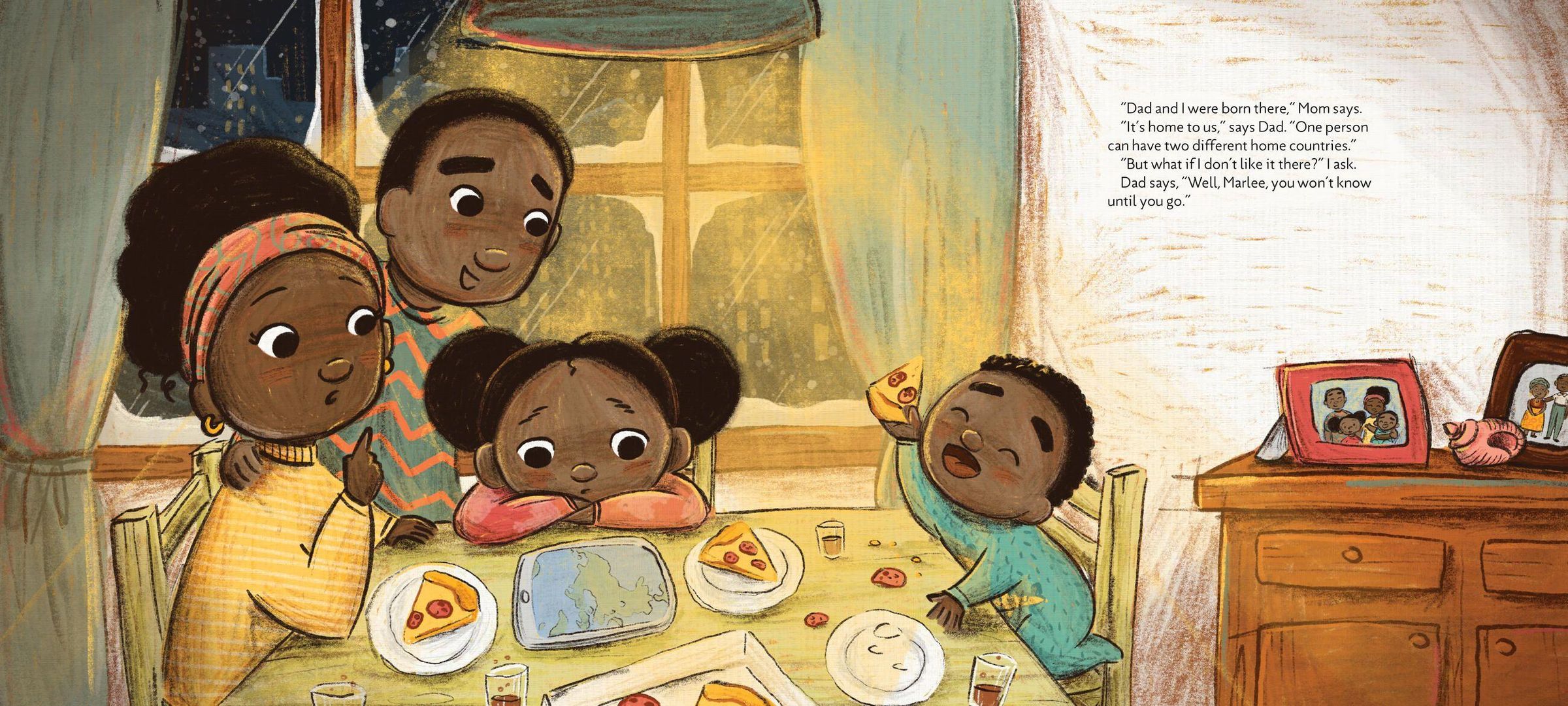 Marlee's parents are excited. "We are going back home!" they tell her and her brother. "Not my home," Marlee says. She knows the island is where her mum and dad grew up, and that she and her brother will get to do lots of fun things when they visit. But she's never been there. And though her dad says a person can have two home countries, Marlee isn't sure she believes him. But slowly, the warm welcome from her large, loving family, the coconut water she drinks on the beach and the many other delights she discovers on the island, from pigs on the beach to music at bedtime, help Marlee see that what her dad says is true.