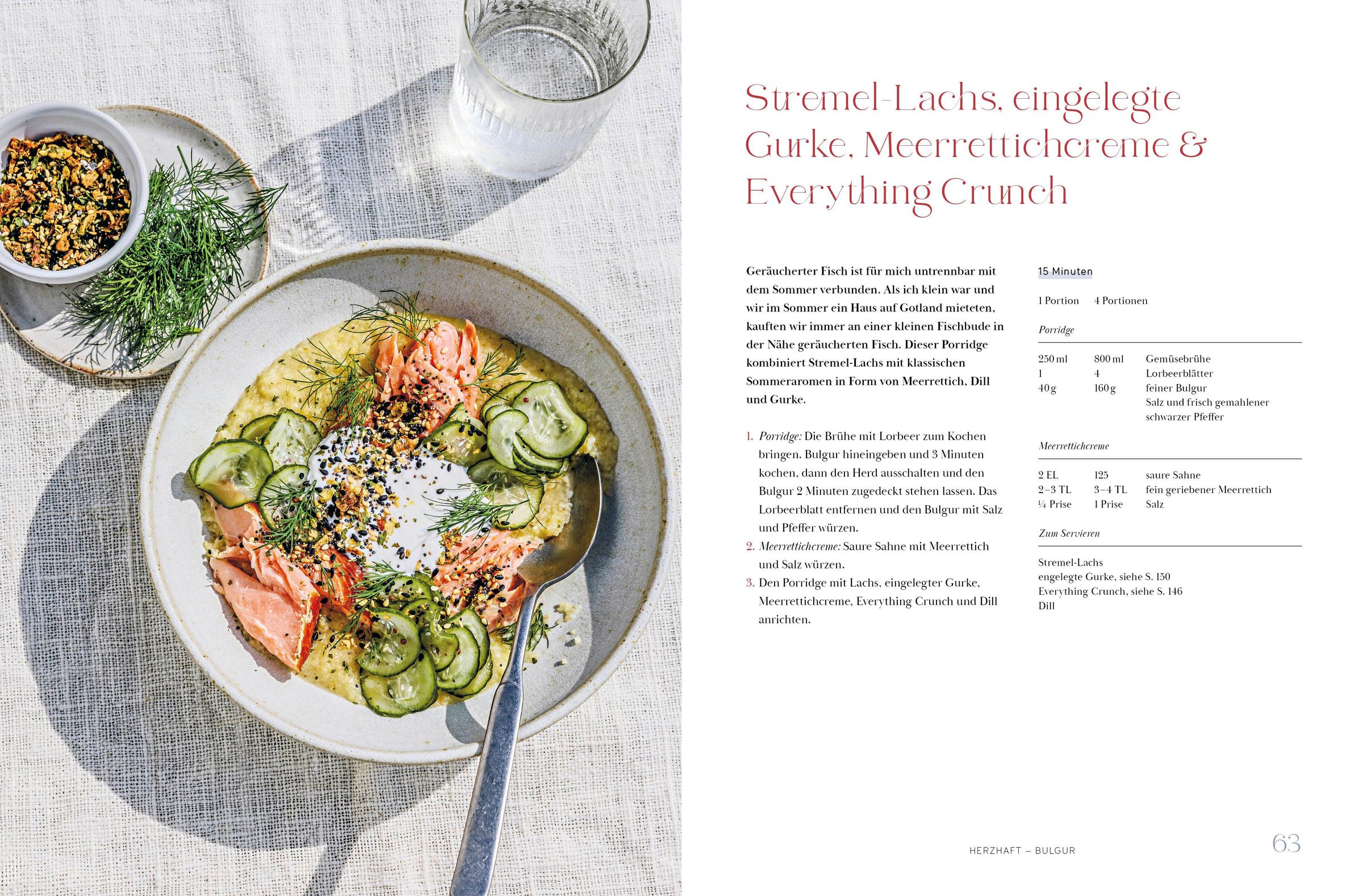 Internationale Klassiker und moderne Ideen: von Overnight Oats mit Mango über Sticky Rice mit Kokosmilch bis hin zu Mujadara mit Joghurt. Auch süße Neuinterpretationen wie Tarte-Tatin-Porridge oder Tiramisu als Frühstück sind enthalten.
