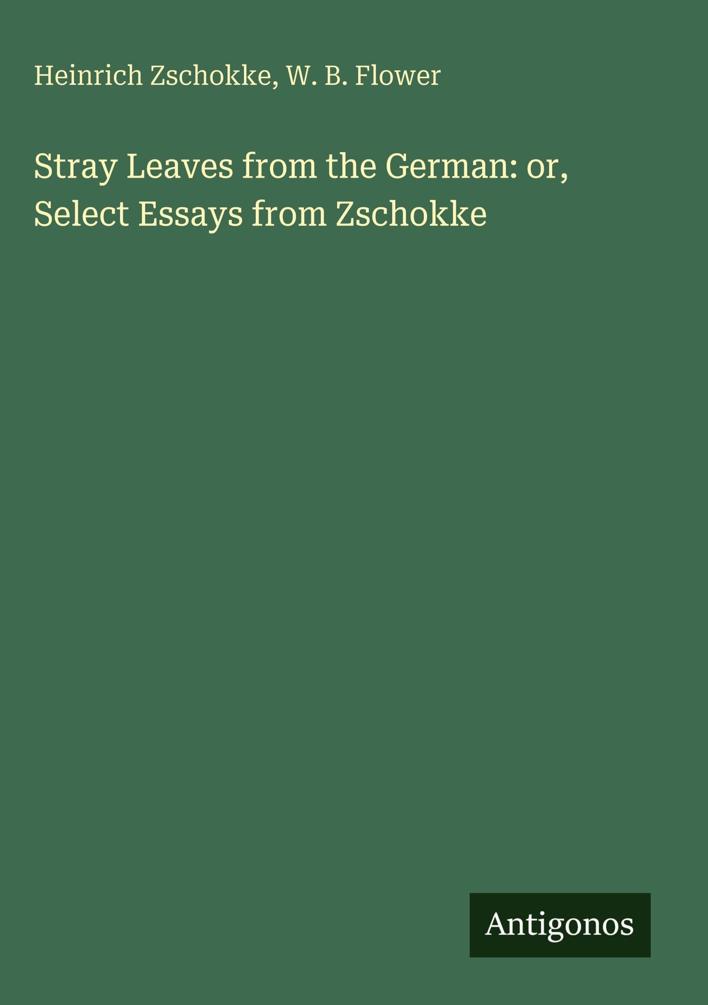Heinrich Zschokke: Stray Leaves from the German: or, Select Essays from Zschokke, Gebunden