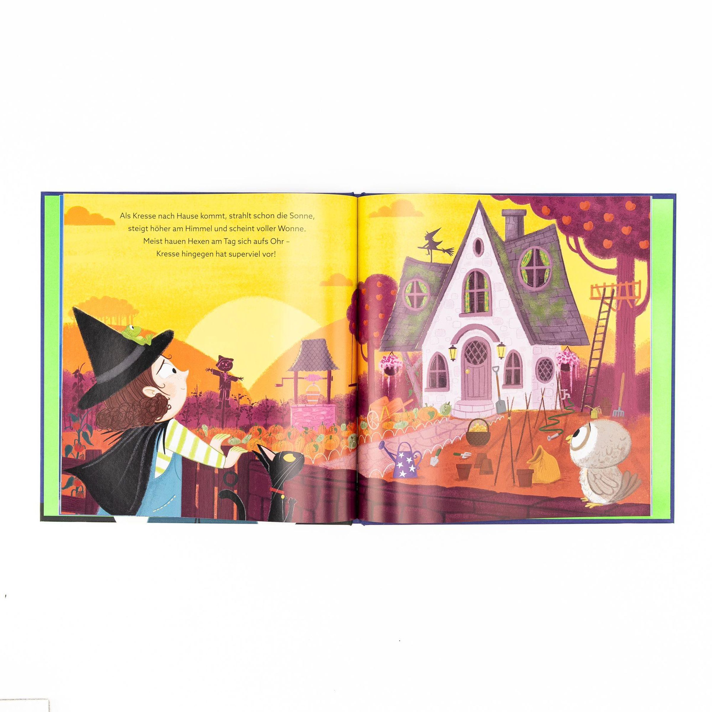 Als die kleine Kürbishexe Kresse an die Zauberschule kommt, merkt sie schnell, dass sie aus der Reihe tanzt: Der fliegende Besen gehorcht ihr nicht, der Zaubertrank explodiert und auch das Unsichtbarwerden will ihr einfach nicht gelingen ... So richtig in ihrem Element fühlt sich Kresse nur, wenn sie nach dem Unterricht in ihrem Garten werkeln kann. Schließlich steht Halloween vor der Tür und natürlich soll an der Schule eine große Party steigen. Doch die Kürbislieferung trifft nicht ein und plötzlich liegt es an der kleinen Hexe mit den grünen Fingern, die Feier zu retten!