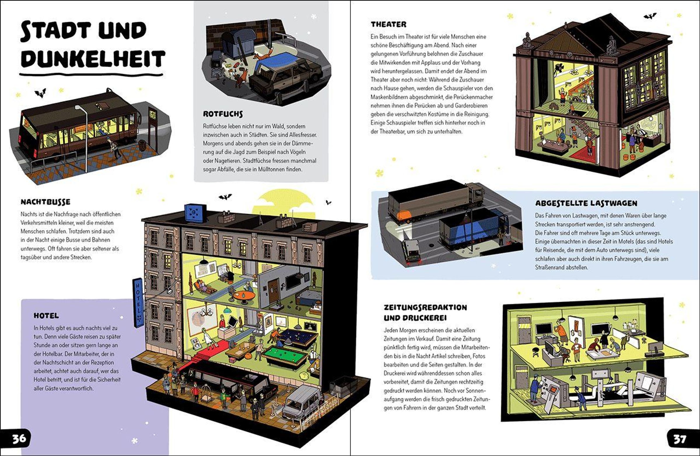 Licht aus - Entdeckermodus an!Du möchtest wissen, was in deiner Stadt oder in deinem Dorf passiert, während du schläfst? Oder wer im ewigen Dunkel der Tiefsee zu Hause ist? Dann hält dieses Buch die Antworten für dich parat. Triff nachtaktive Tiere, lerne, wer in der Dunkelheit arbeiten muss, und erfahre, welche Pflanzen nachts blühen. Du wirst sehen: Die Dunkelheit ist voller Leben - erkunde sie!Dieses spannende Sachbuch zum Anschauen, Entdecken und Vorlesen bringt Licht ins Dunkel.