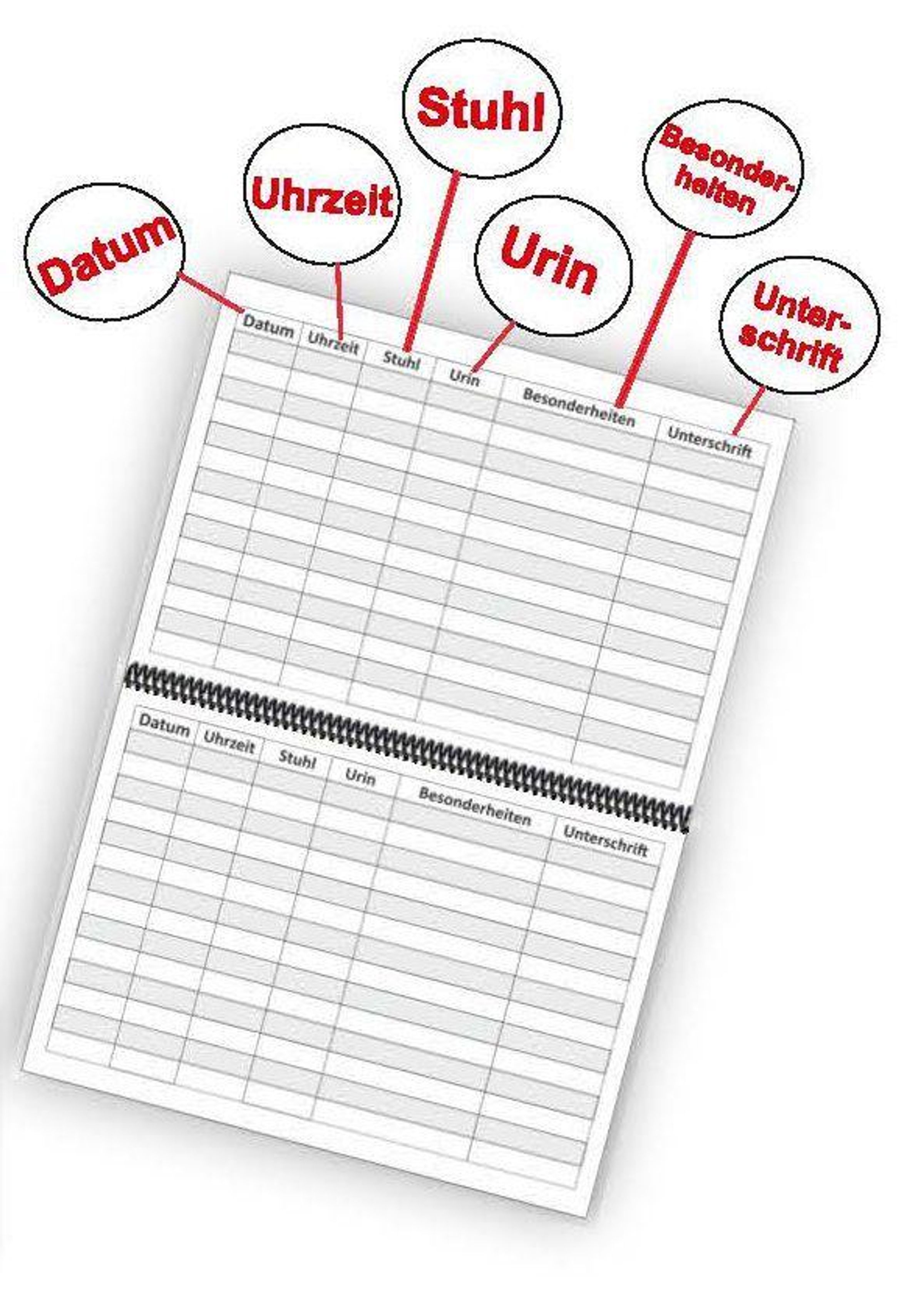- viel Platz für Dokumentationen (Wer hat das Kind wann gewickelt? Wie war die Konsistenz des Windelinhalts? Gab es Besonderheiten?)