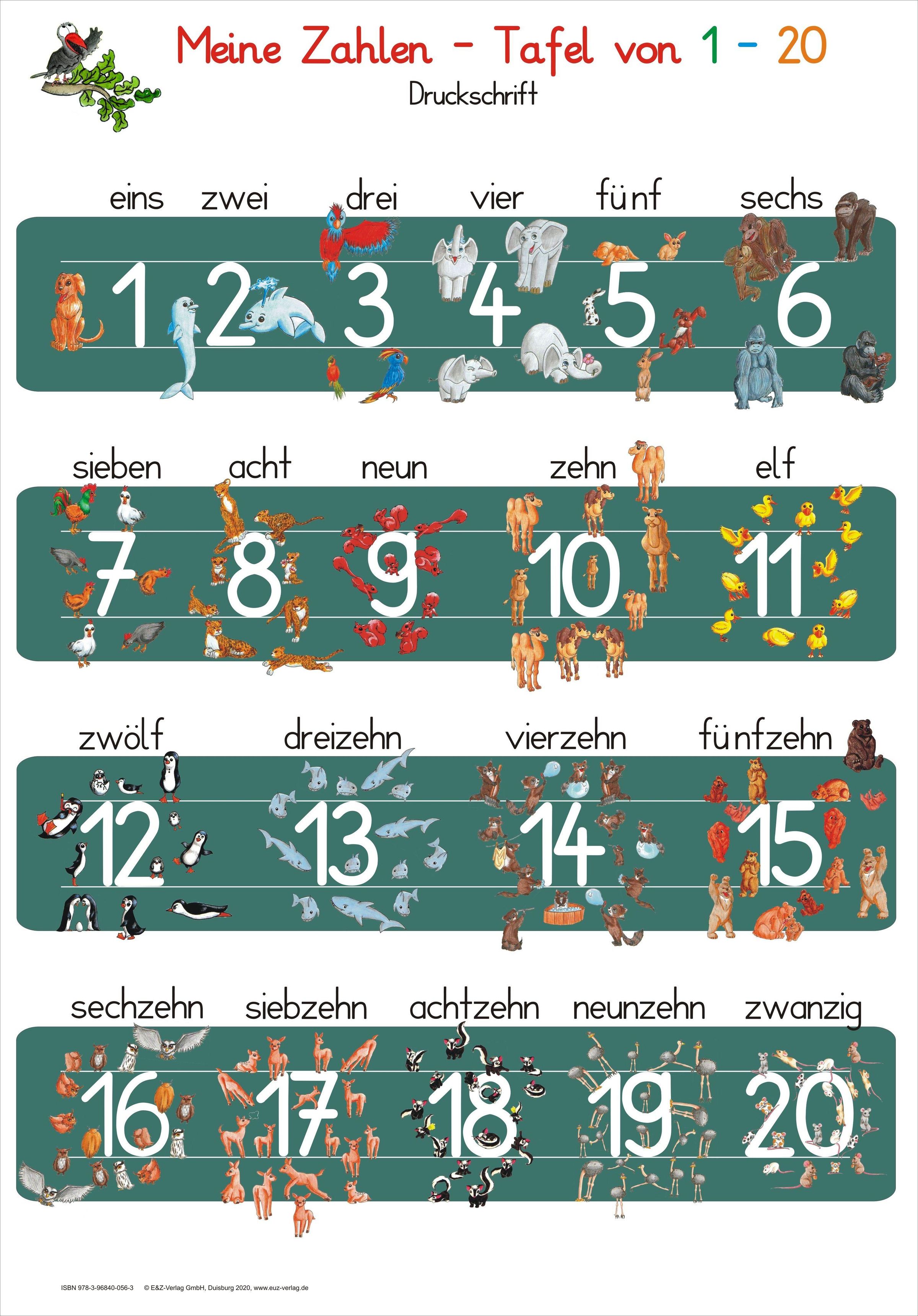 Meine Zahlen-Tafel von 1-20 Druckschrift