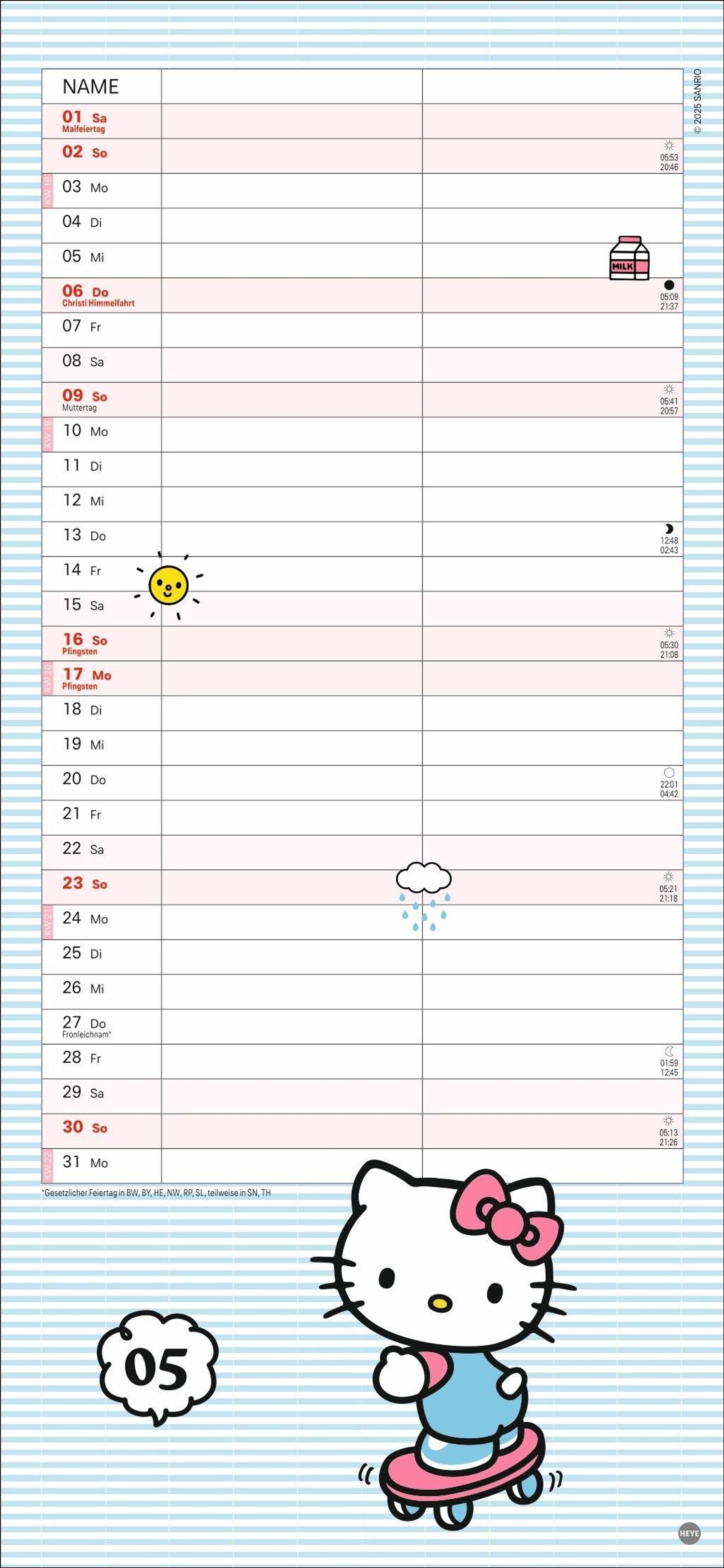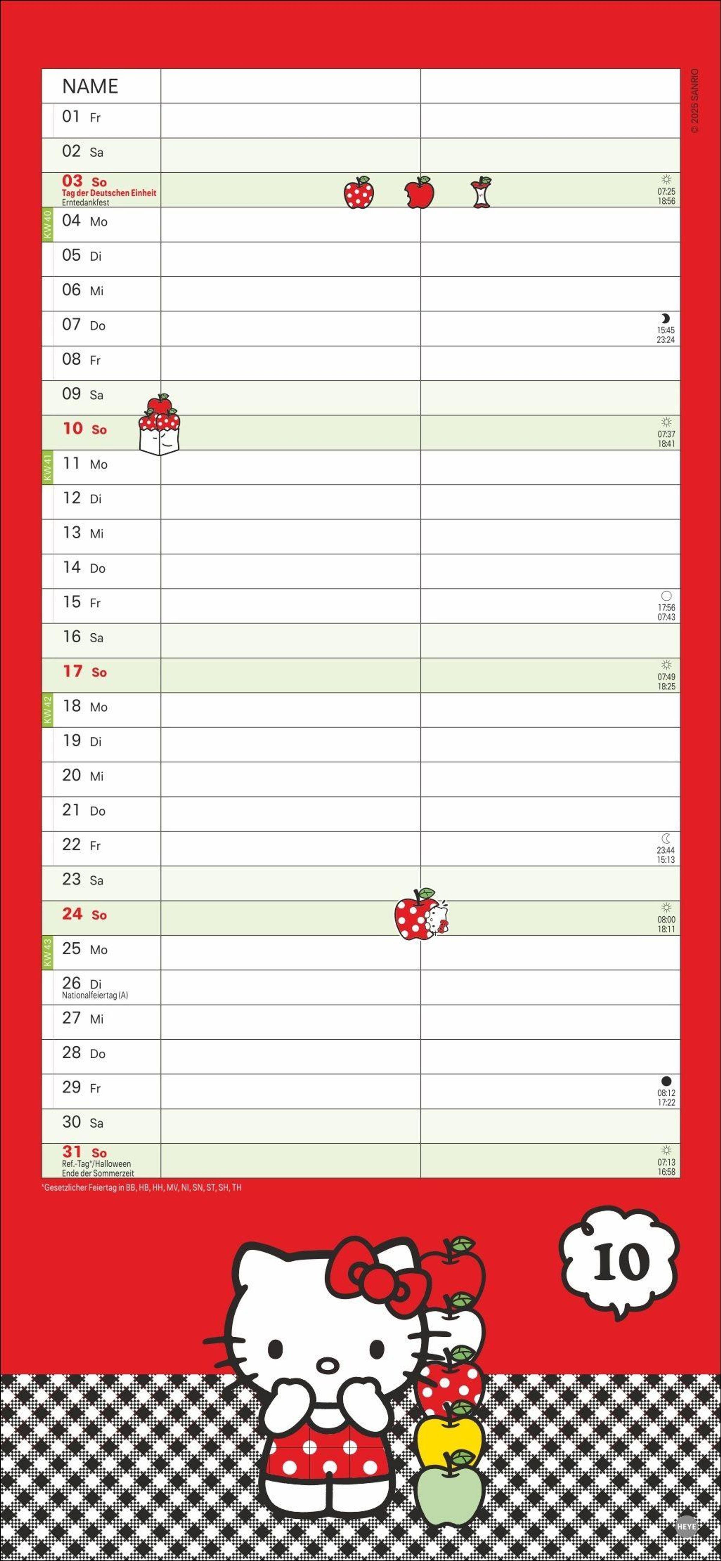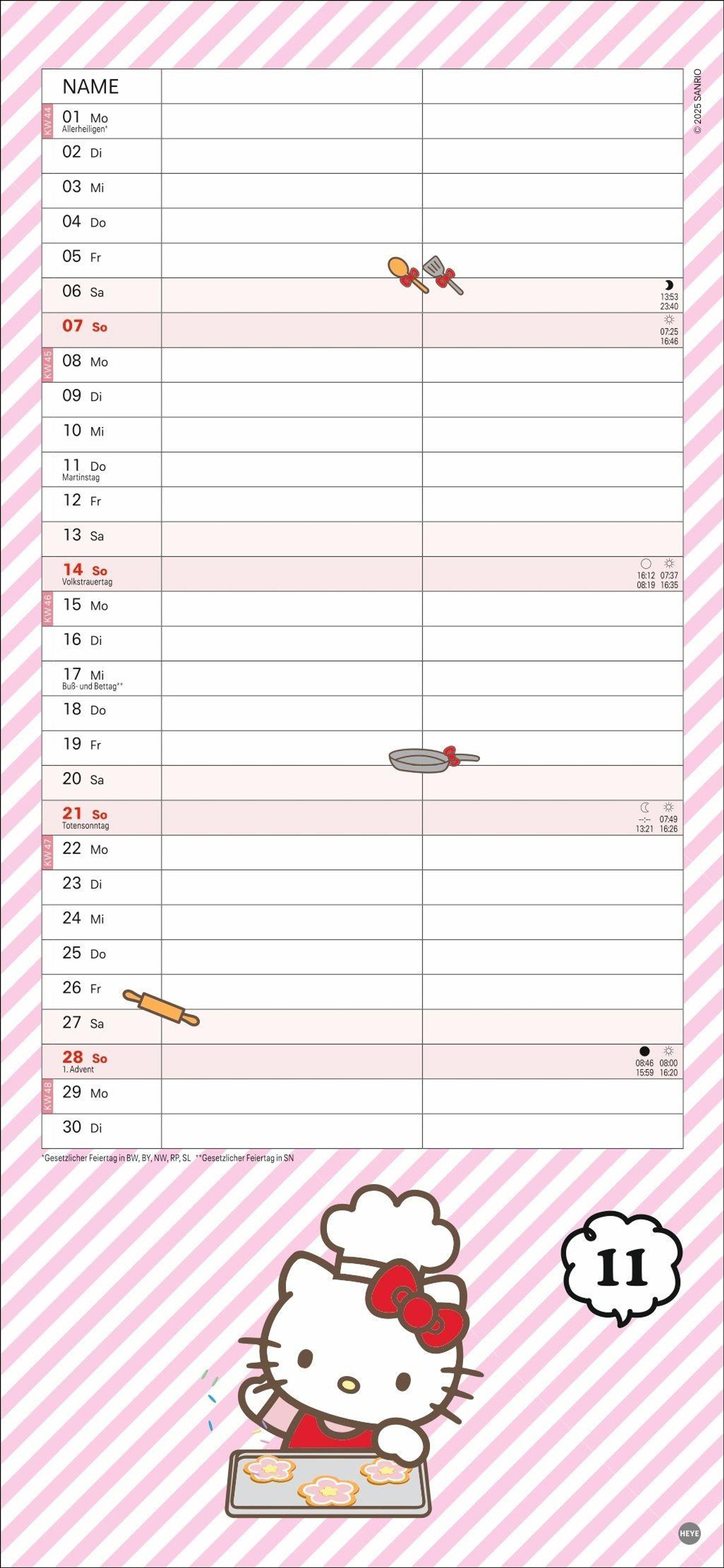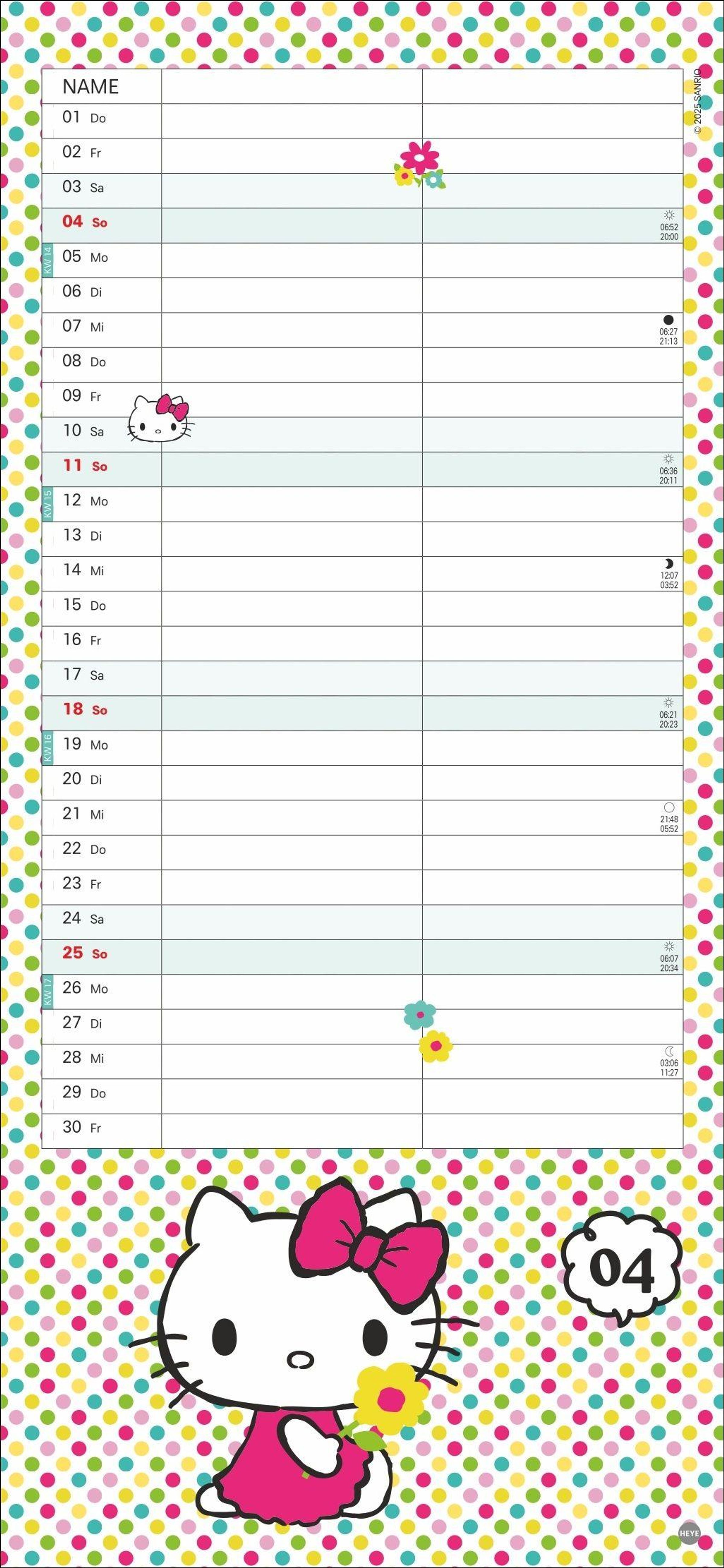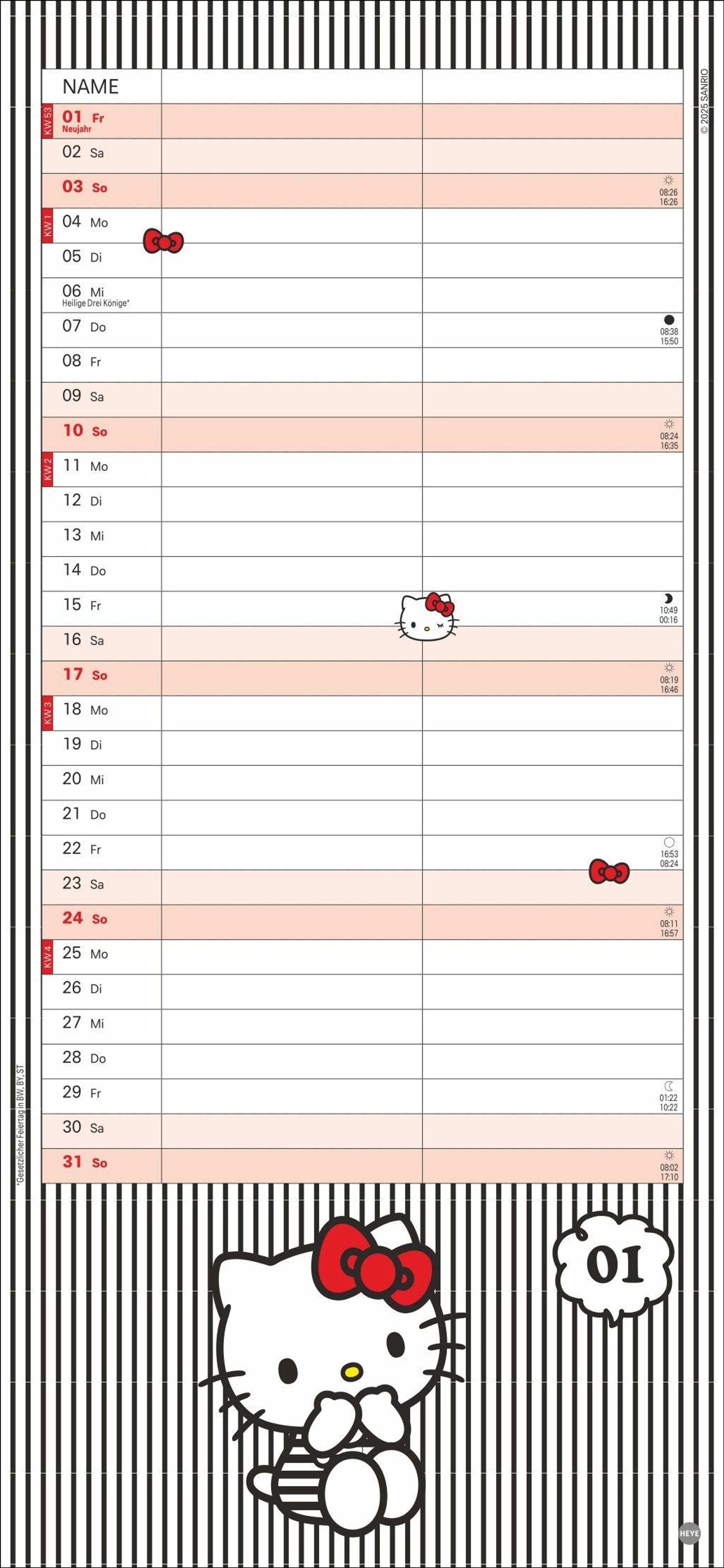 Mit der süßen Katze den Überblick behalten: Wandplaner für Paare im Hello Kitty-Design mit Jahres-Vorschau bis März 2028