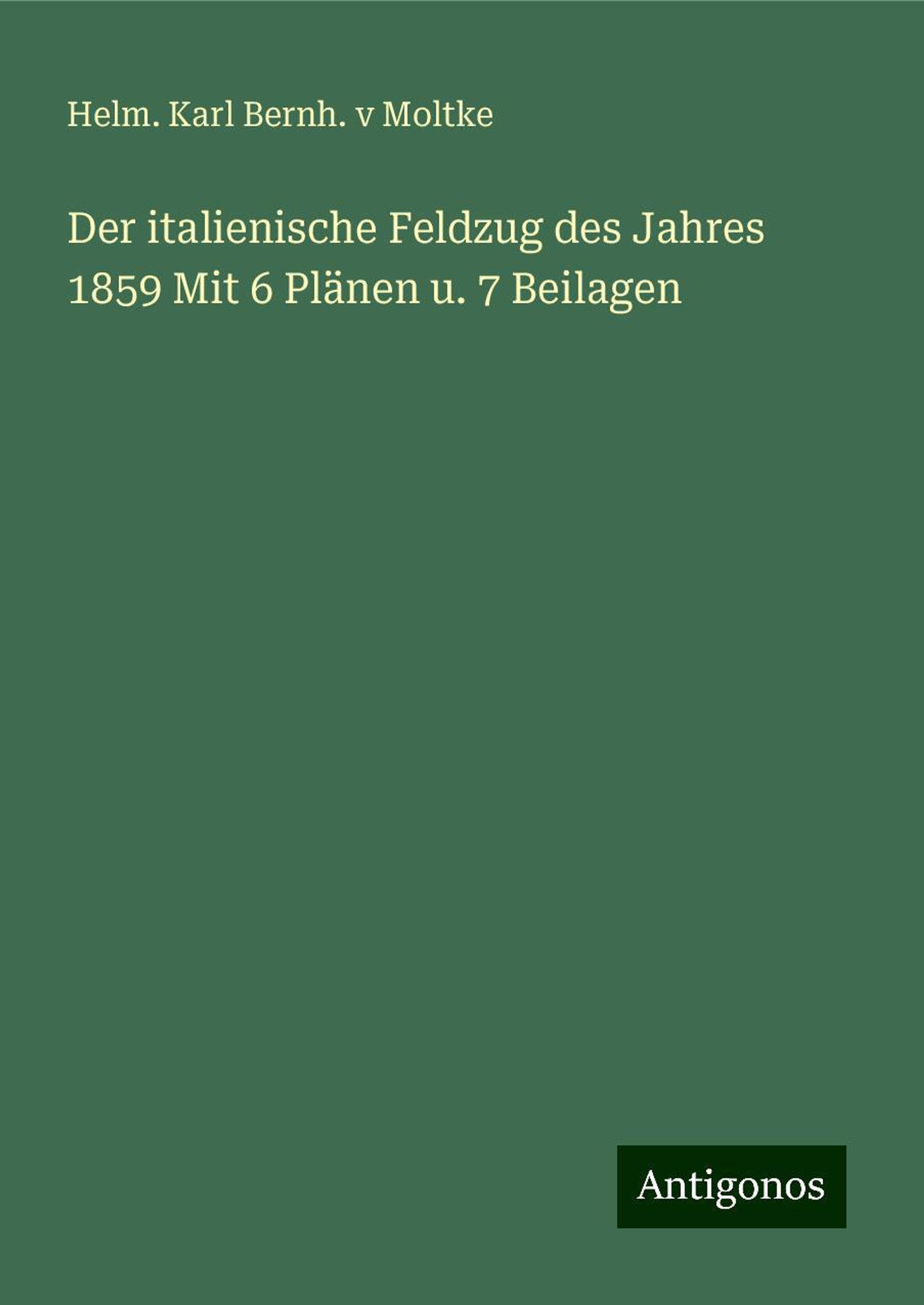 Helm. Karl Bernh. v Moltke: Moltke, H: Der italienische Feldzug des Jahres 1859 Mit 6 Pl, Fester Einband
