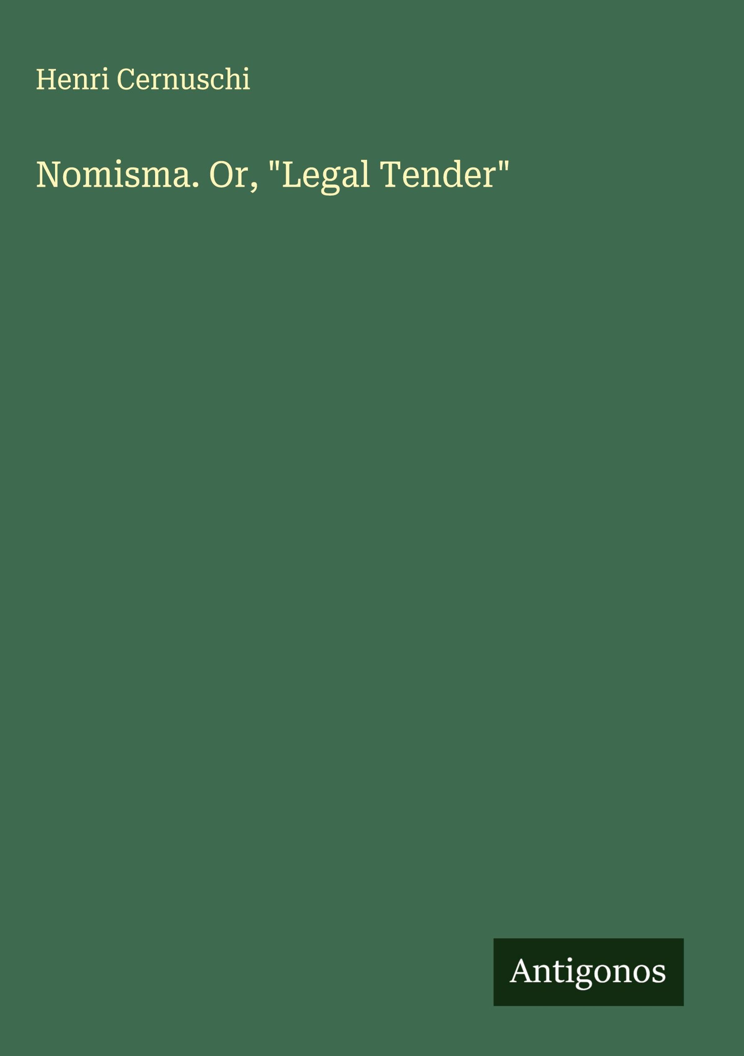 „Henri Cernuschi. Nomisma. Or, 'Legal Tender'.“ Grüner Hintergrund, unten rechts kleines Logo "Antigonos"., Buch