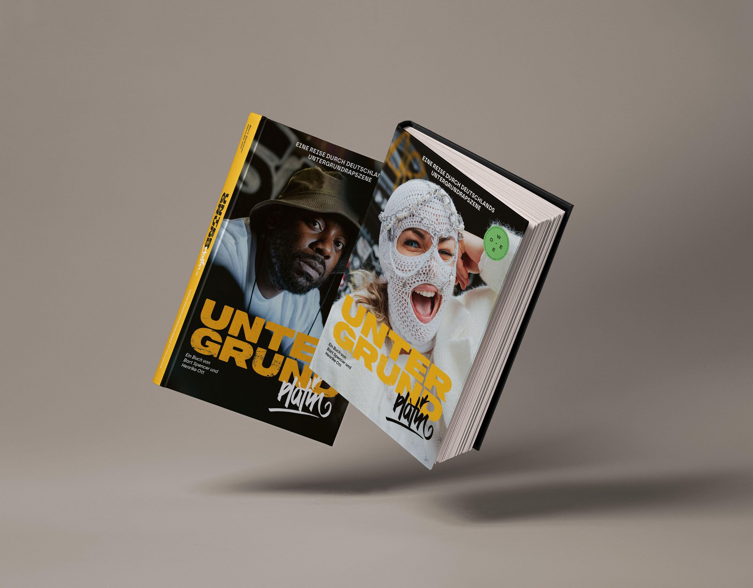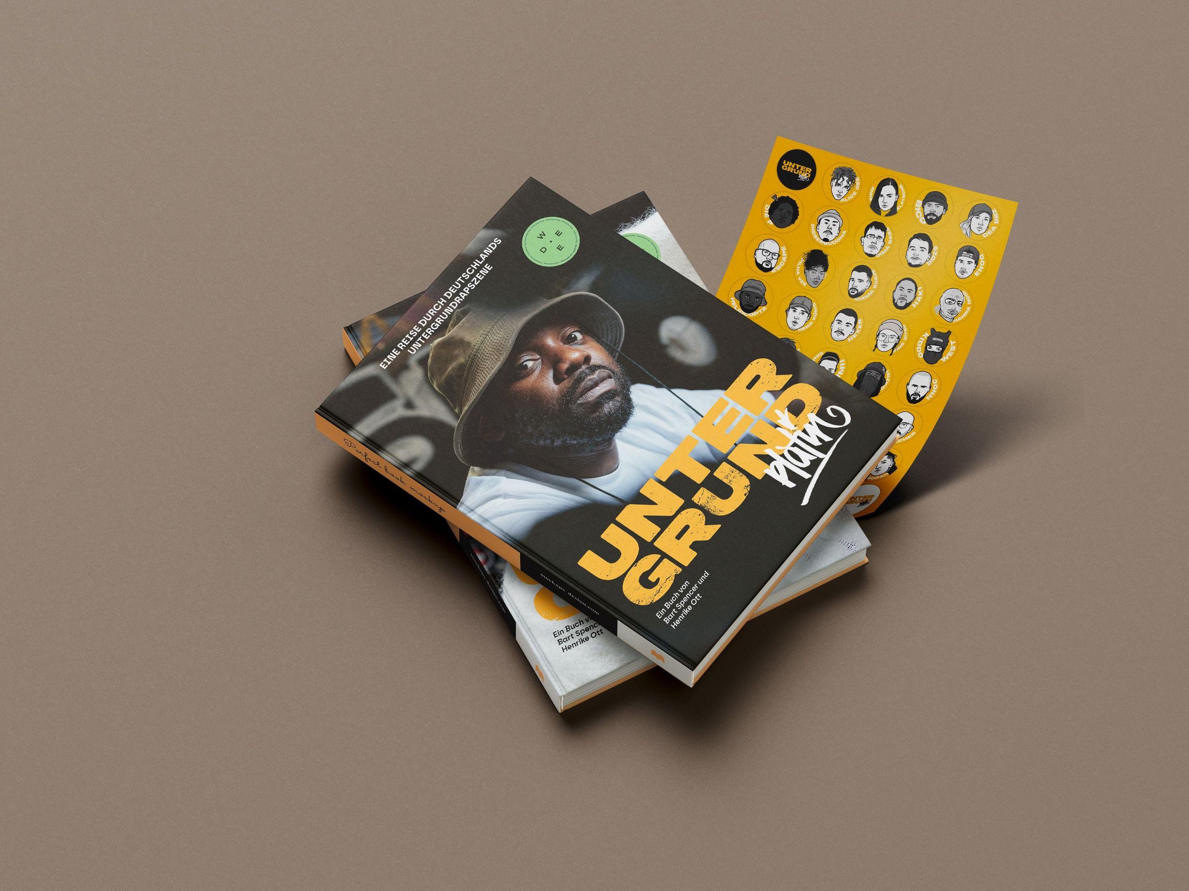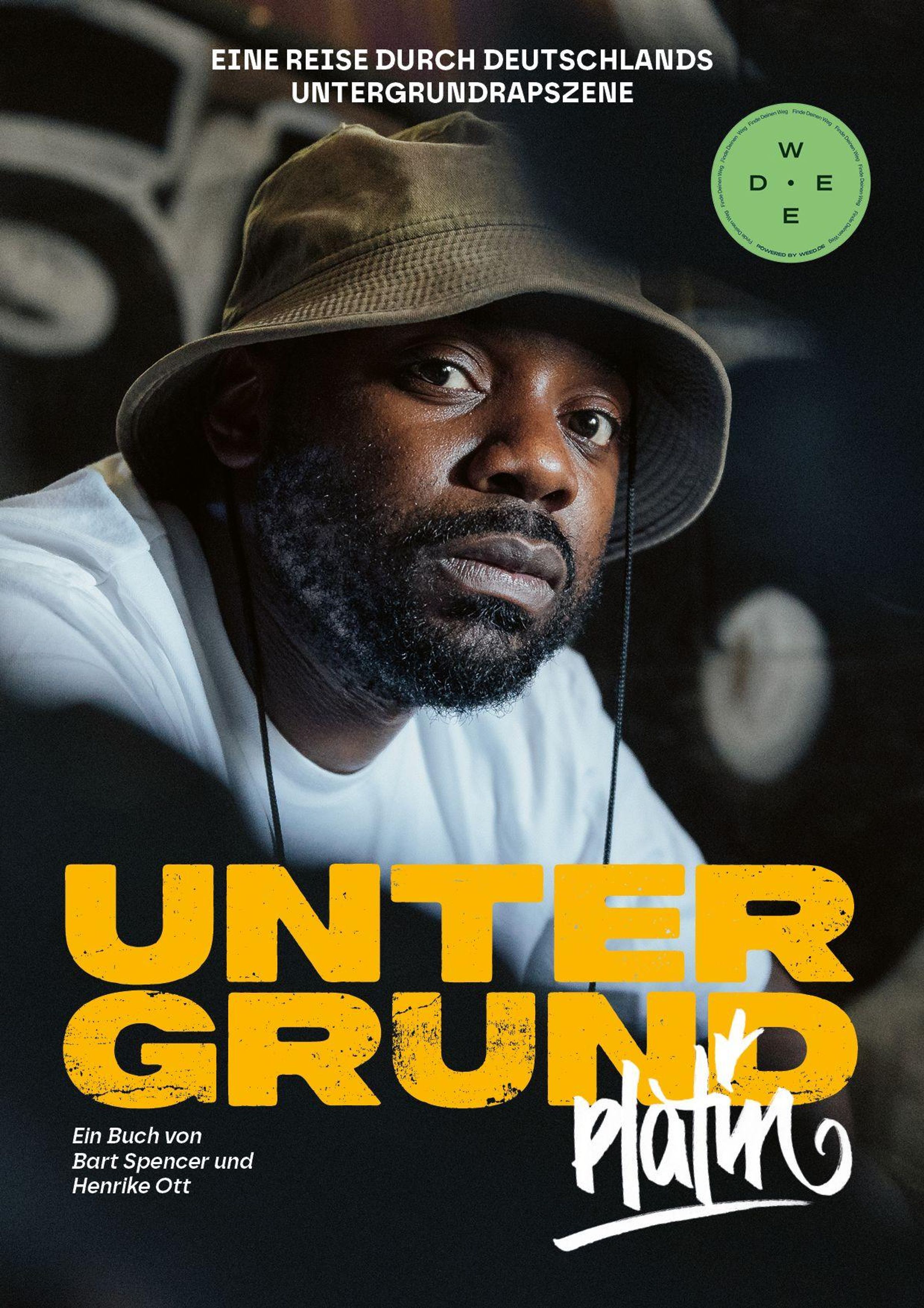 „Eine Reise durch Deutschlands Untergrundrapszene“ oben, „UNTERGRUND platin“ groß unten, Porträt eines Mannes mit Hut., Buch