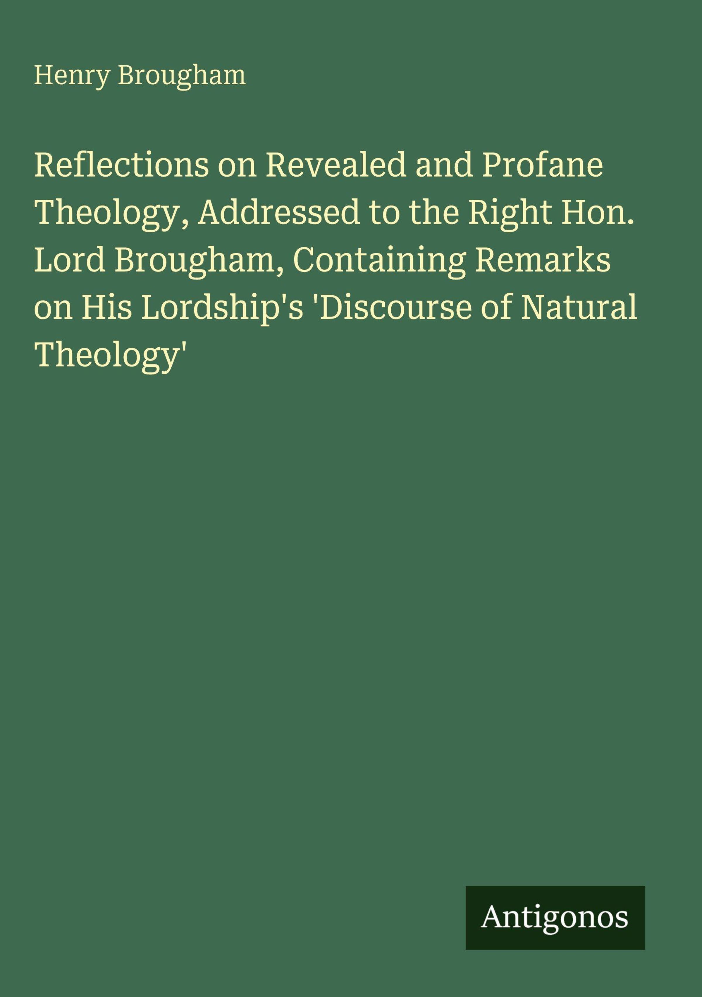 Henry Brougham: Reflections on Revealed and Profane Theology, Addressed to the Right Hon. Lord Brougham,..., Gebunden