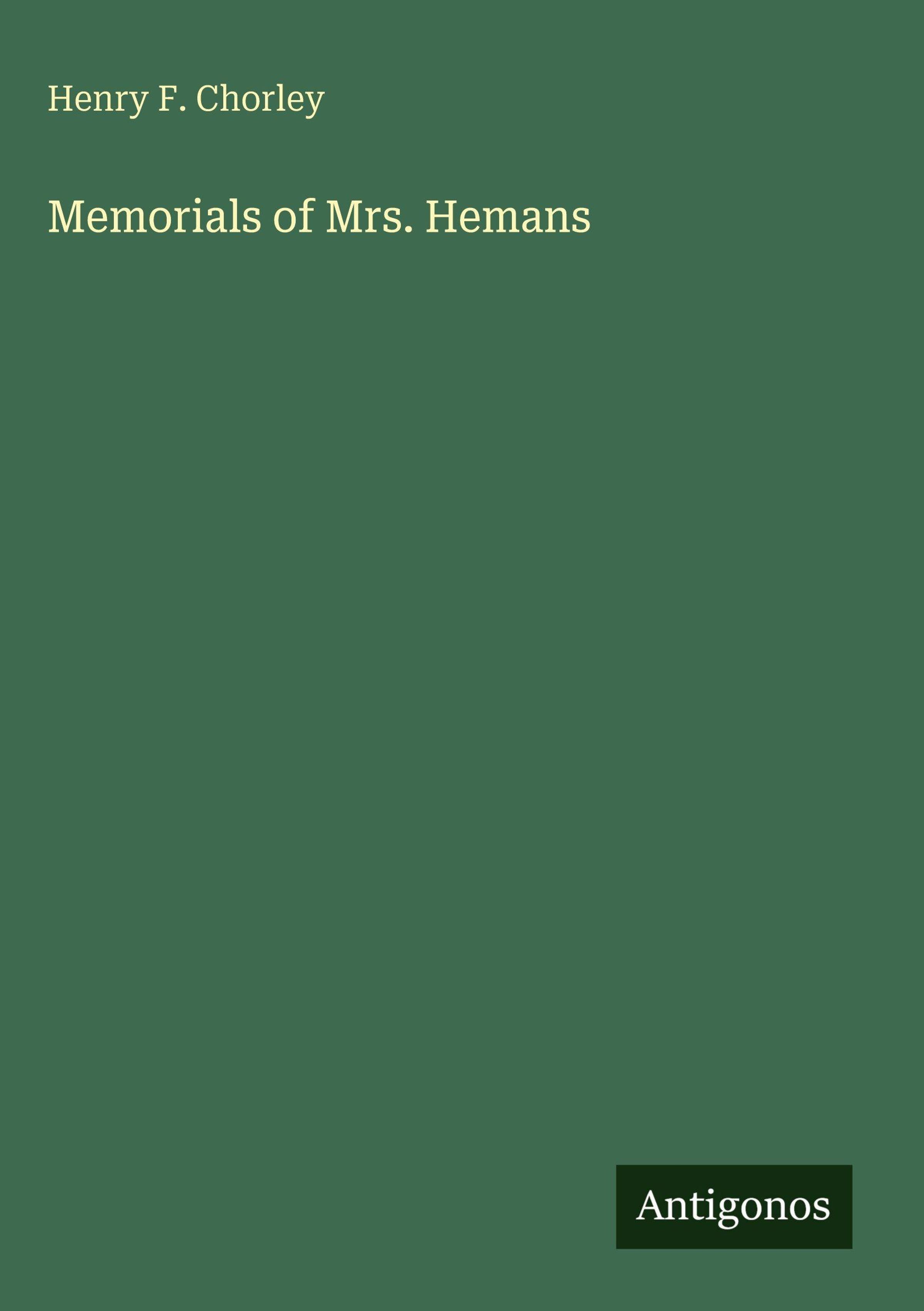 Henry F. Chorley: Memorials of Mrs. Hemans, Gebunden