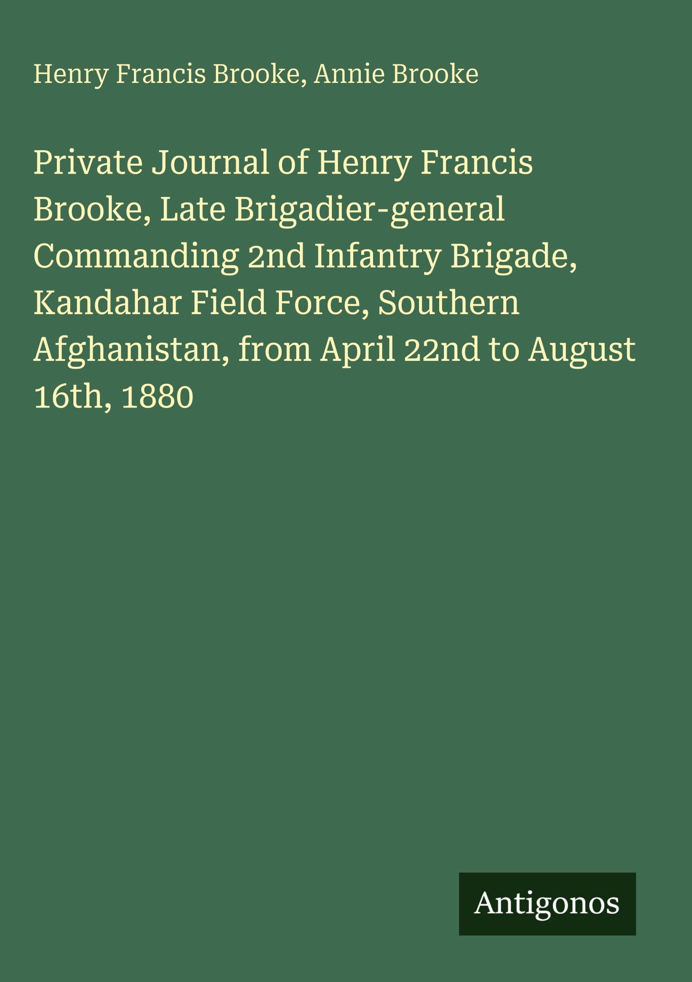 Private Journal of Henry Francis Brooke, Late Brigadier-general Commanding 2nd Infantry Brigade, Kandahar Field Force, Southern Afghanistan, from April 22nd to August 16th, 1880