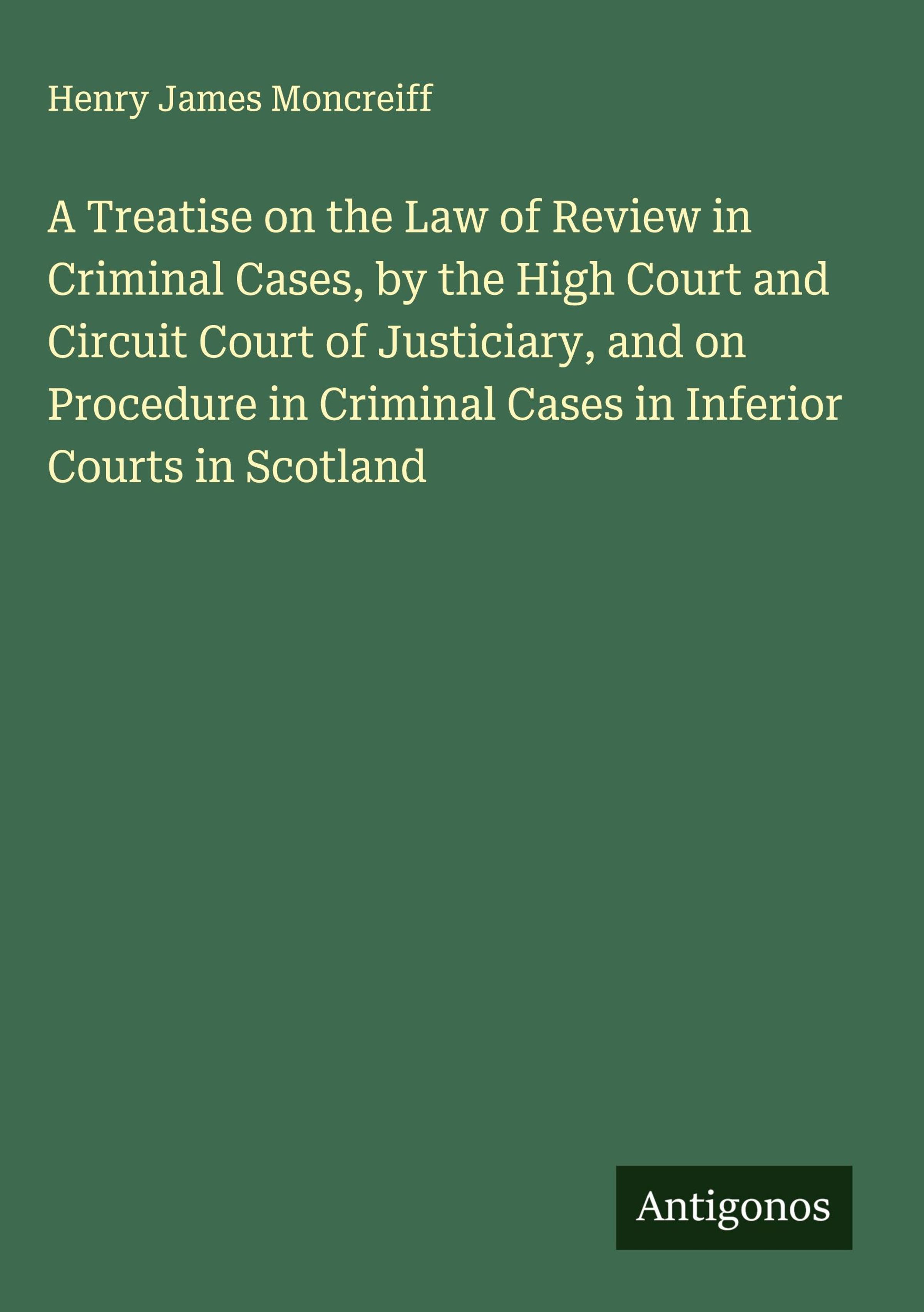 Henry James Moncreiff: A Treatise on the Law of Review in Criminal Cases, by the High Court and Circuit Court of..., Gebunden