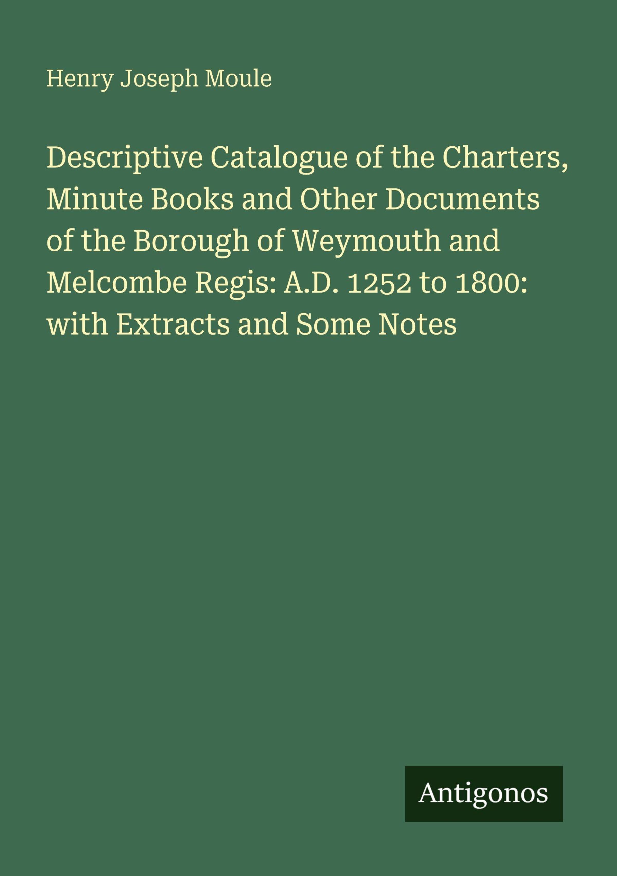 Descriptive Catalogue of the Charters, Minute Books and Other Documents of the Borough of Weymouth and Melcombe Regis: A.D. 1252 to 1800: with Extracts and Some Notes