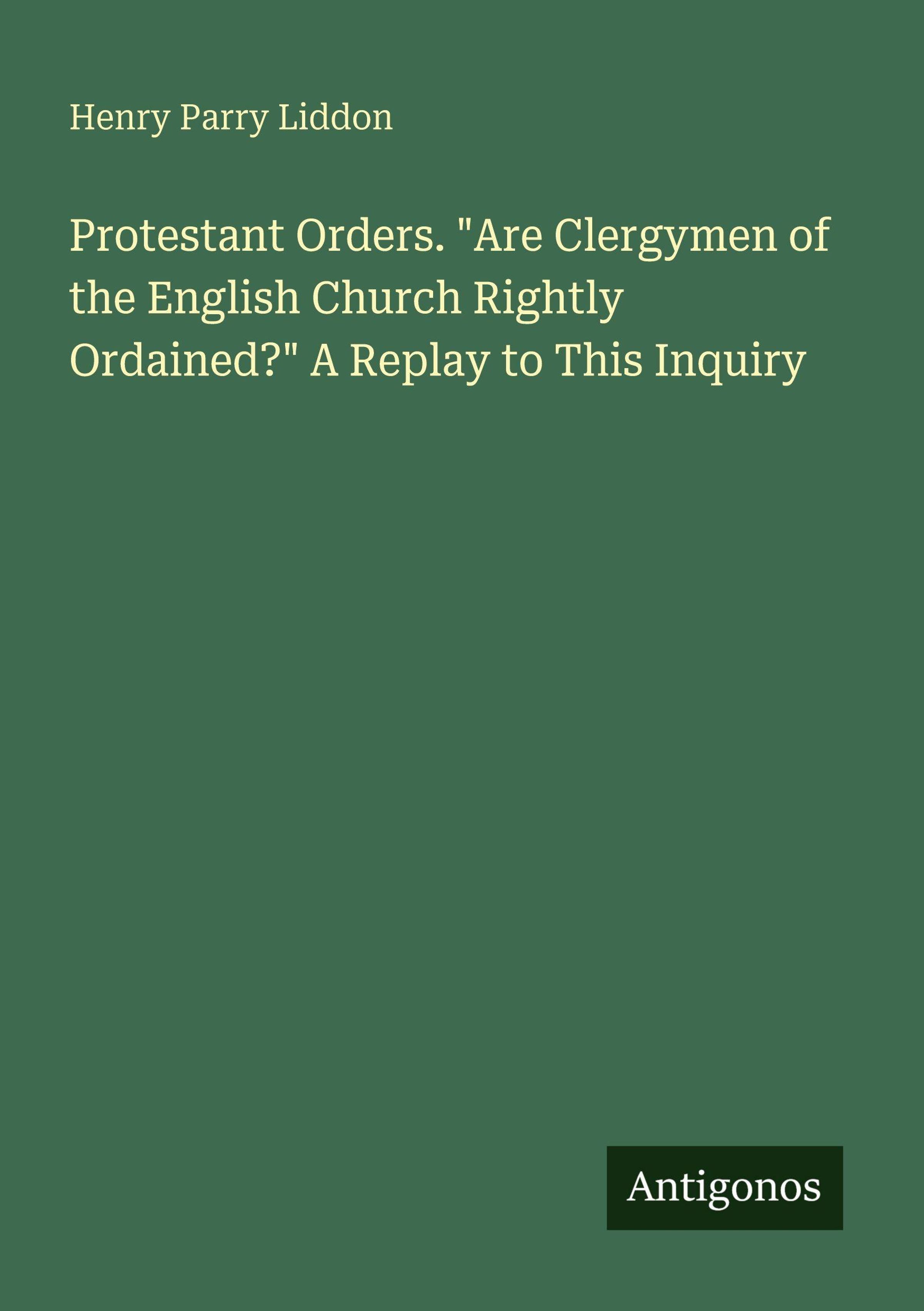 Henry Parry Liddon: Protestant Orders. "Are Clergymen of the English Church Rightly Ordained?" A Replay to This..., Kartoniert / Broschiert