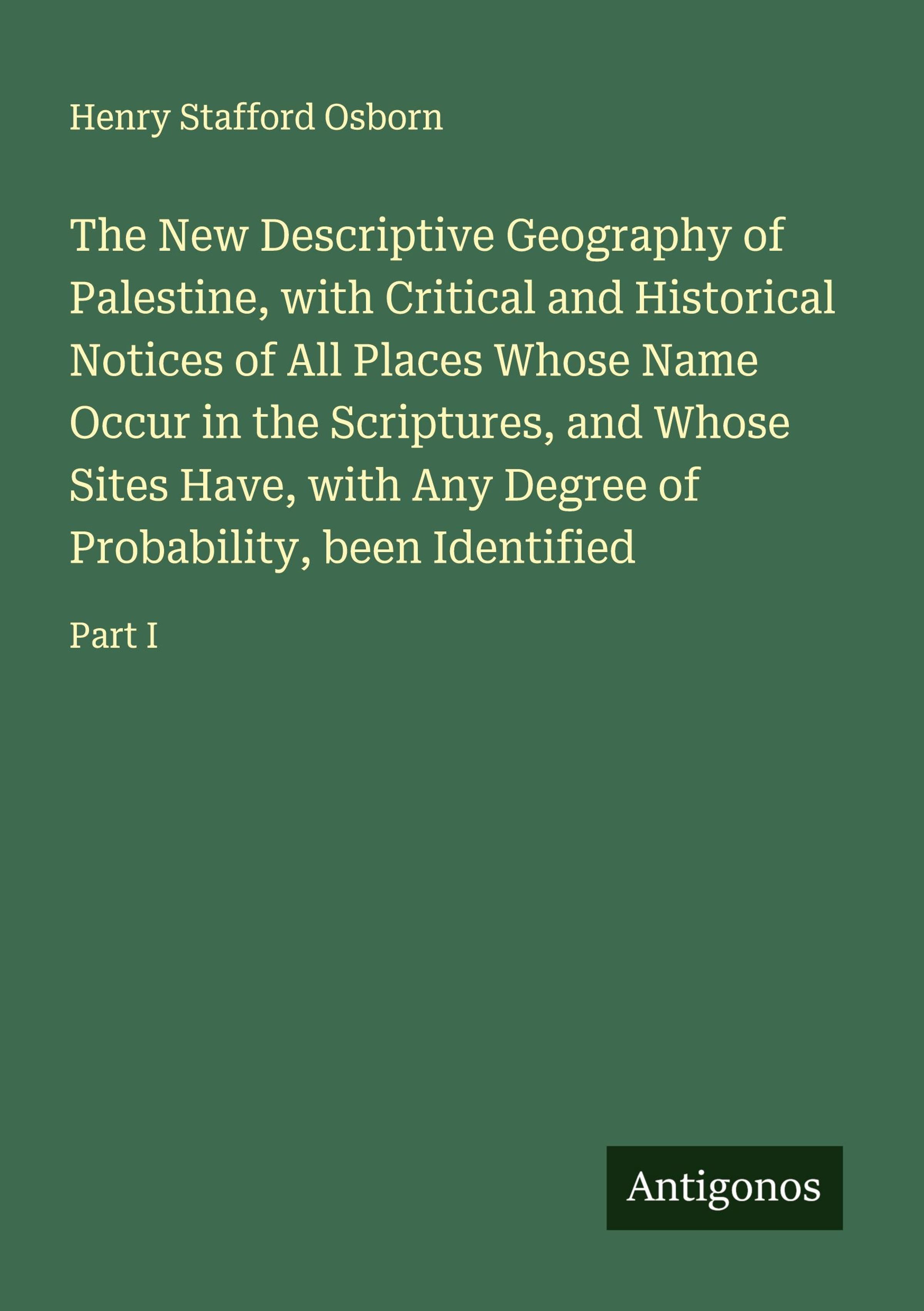 The New Descriptive Geography of Palestine, with Critical and Historical Notices of All Places Whose Name Occur in the Scriptures, and Whose Sites Have, with Any Degree of Probability, been Identified