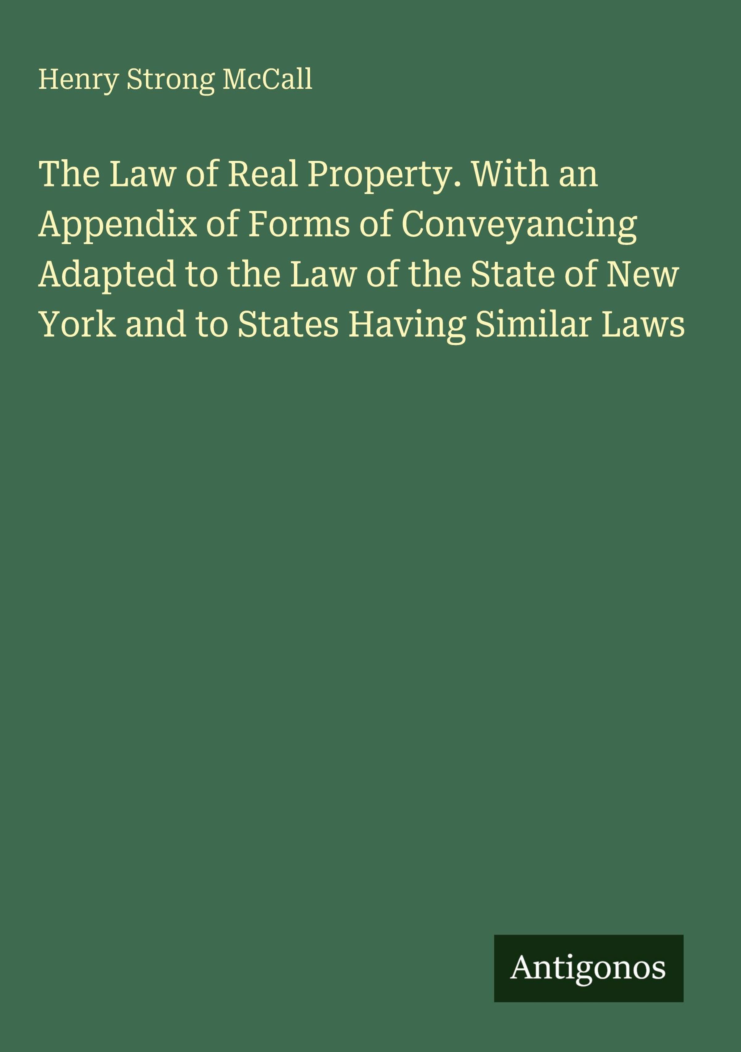 Henry Strong McCall: The Law of Real Property. With an Appendix of Forms of Conveyancing Adapted to the Law of..., Gebunden