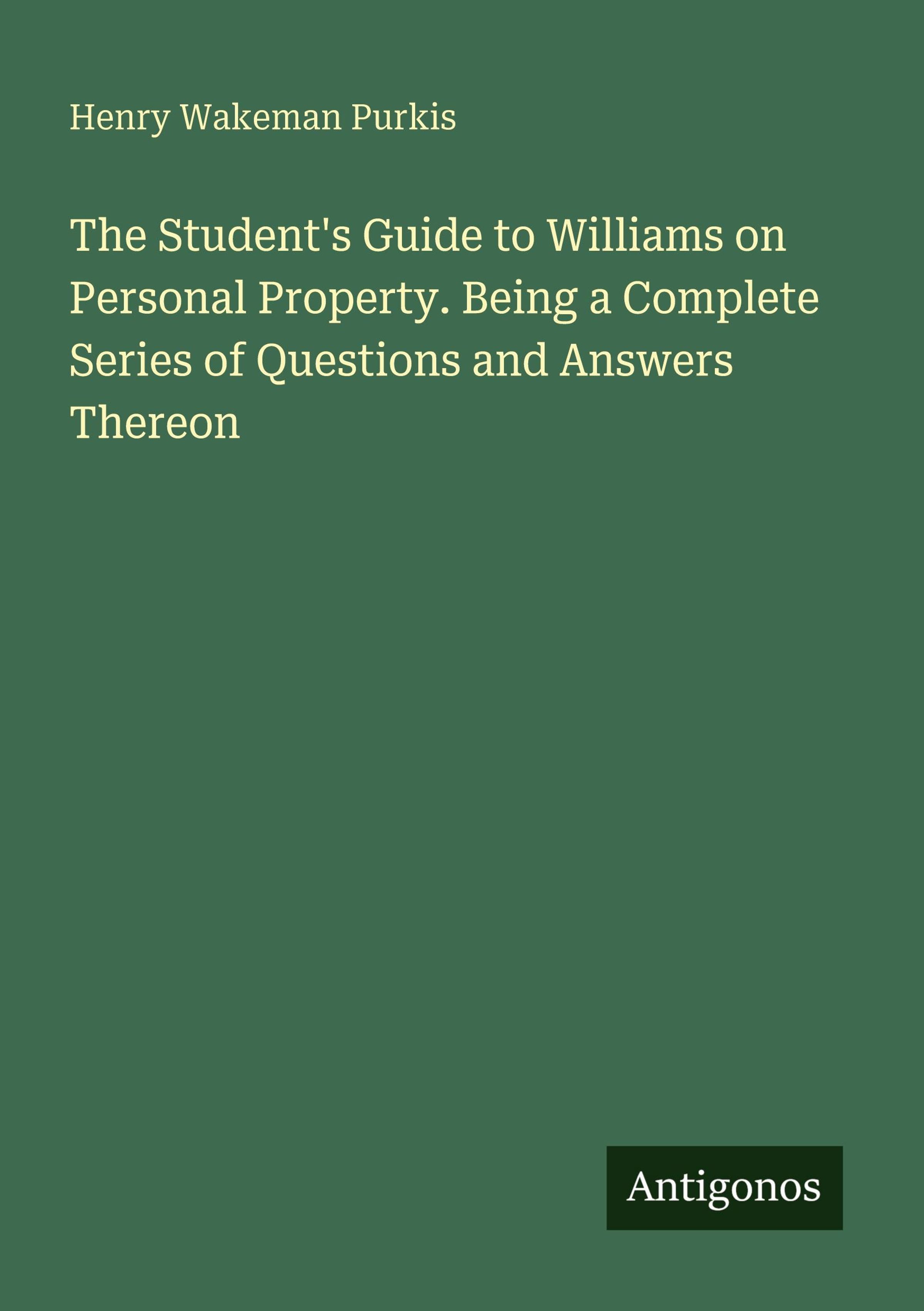 Henry Wakeman Purkis: The Student's Guide to Williams on Personal Property. Being a Complete Series of Questions..., Kartoniert / Broschiert