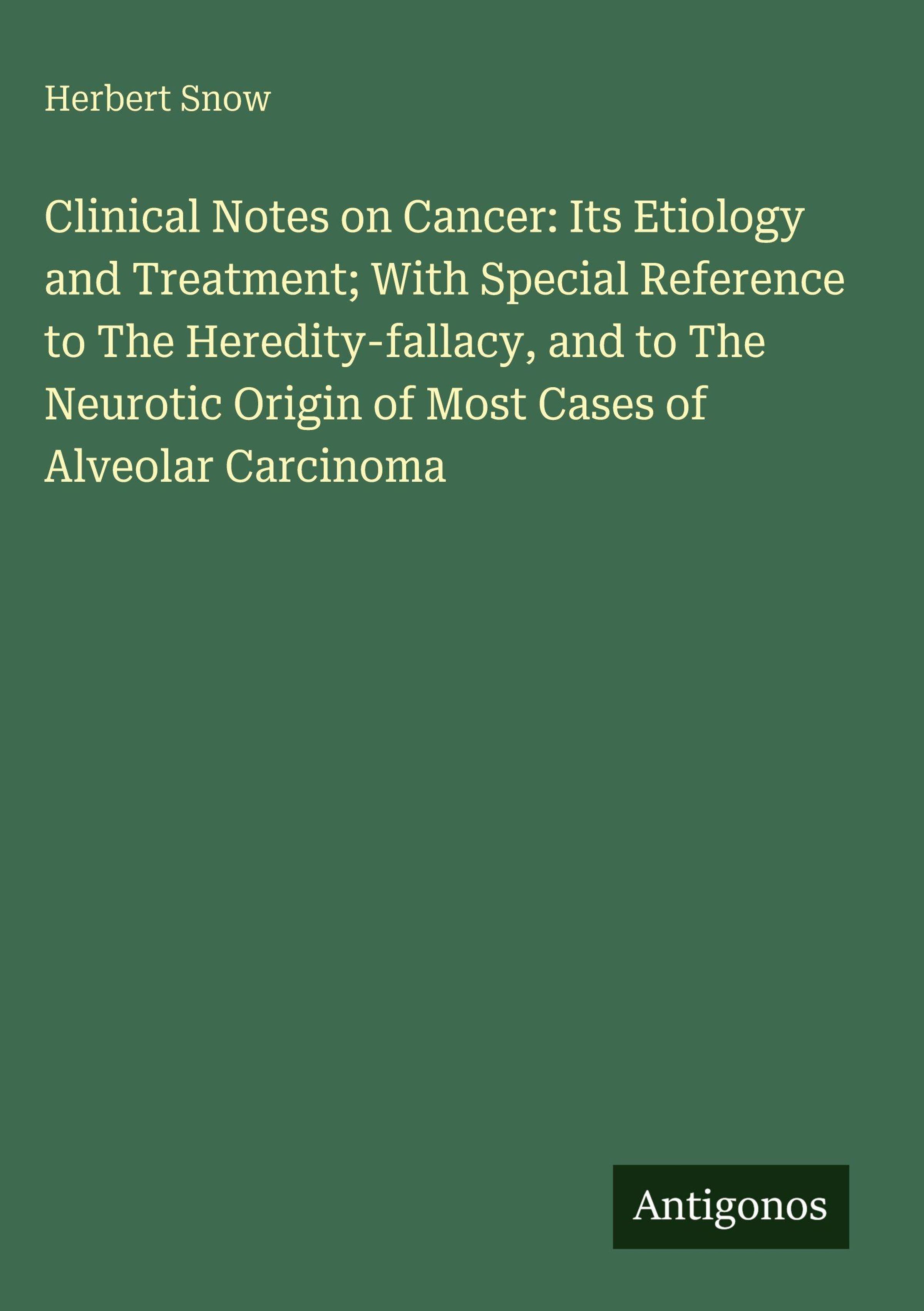 Herbert Snow: Clinical Notes on Cancer: Its Etiology and Treatment; With Special Reference to The..., Gebunden