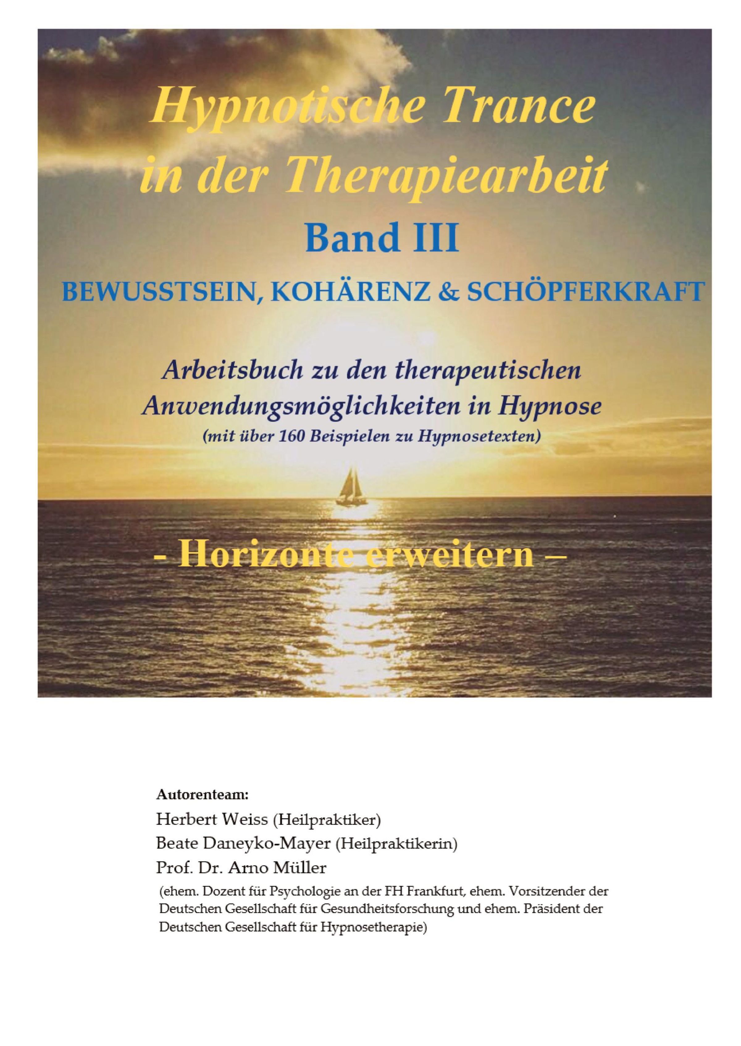 Dieses Buch (Band III) ist ein weiterer Schritt in und durch das Tor zu den unerforschten Tiefen des menschlichen Geistes und seiner Psyche und bietet eine Sammlung von sorgfältig ausgearbeiteten Hypnosetexten mit umfangreichen Beispielen aus verschiedenen Themen als Textsammlung zu den Bereichen: Bewusstsein, Kohärenz und Schöpferkraft mit den Sonderthemen: Energetische Ebenen, Trancereisen und speziellen spirituellen Themen