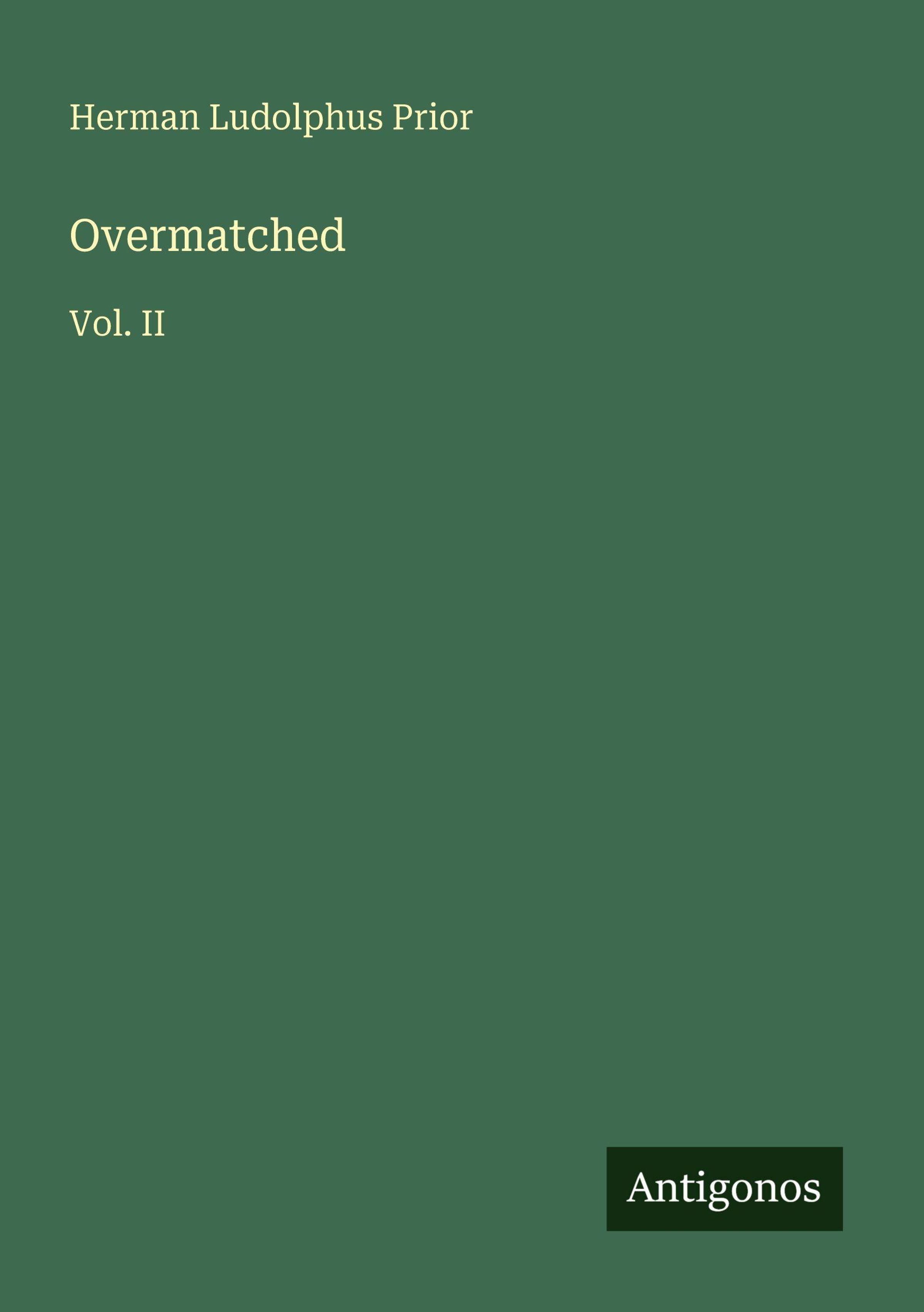 Text: "Herman Ludolphus Prior, Overmatched, Vol. II, Antigonos". Schlichtes, grünes Cover mit weißem Text., Buch