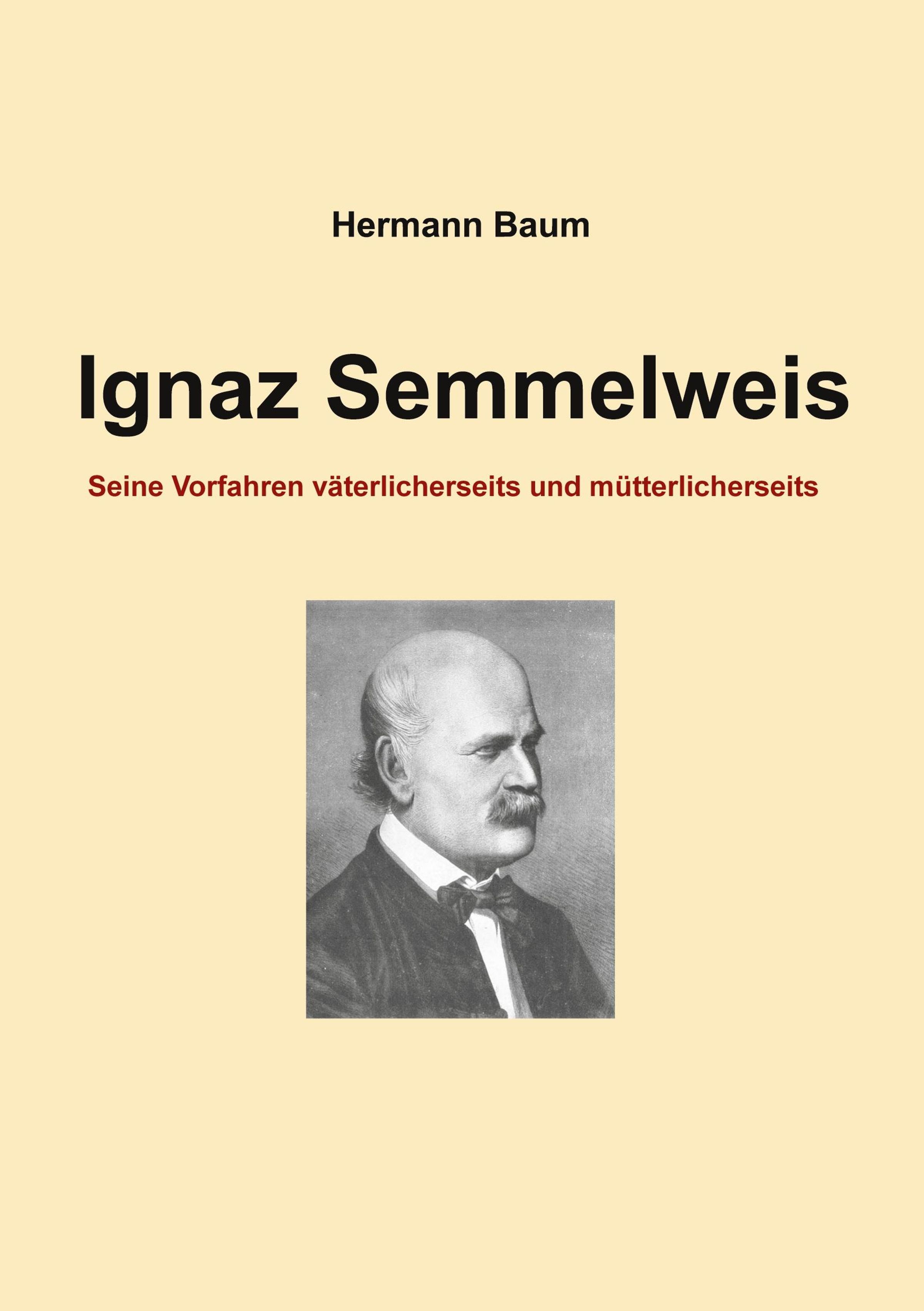 Titel: Ignaz Semmelweis. Untertitel: Seine Vorfahren väterlicherseits und mütterlicherseits. Autor: Hermann Baum. Illustration: Porträt eines Mannes., Buch