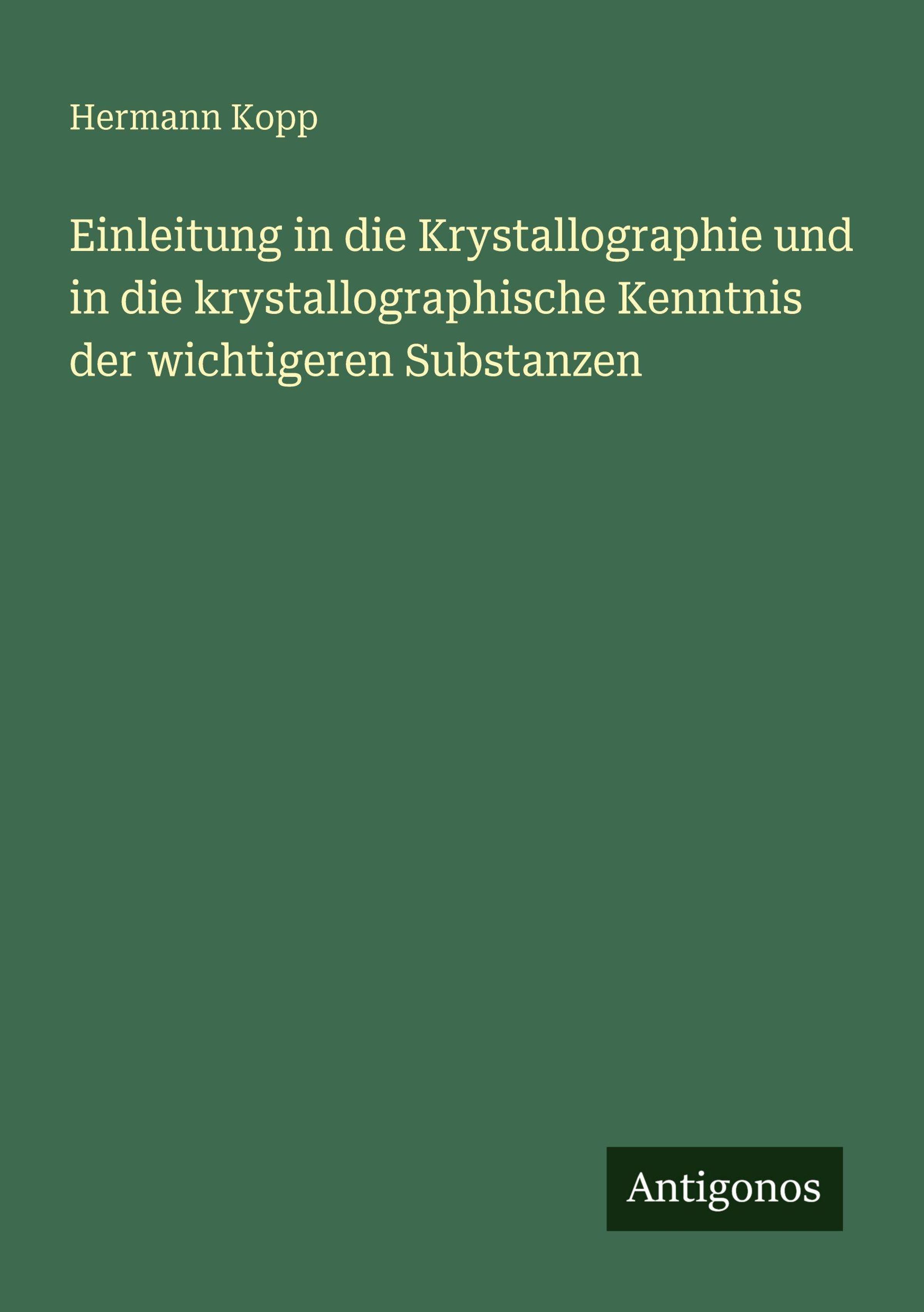 Hermann Kopp: Einleitung in die Krystallographie und in die krystallographische Kenntnis der wichtigeren Substanzen, Kartoniert / Broschiert
