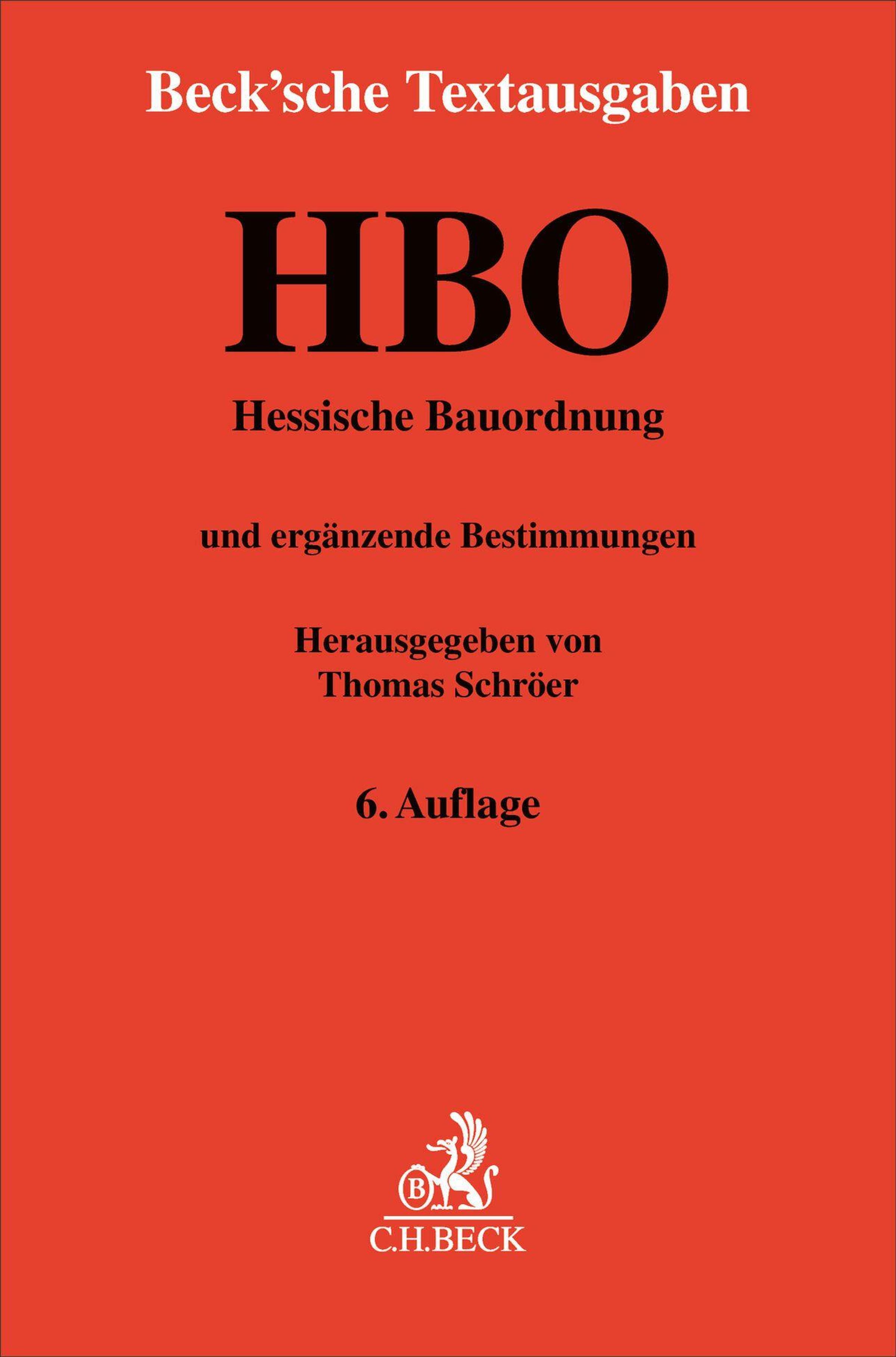 HBO: Hessische Bauordnung, ergänzt, Hrsg. von Thomas Schröer, 6. Auflage. Unten Logo C.H. Beck., Buch