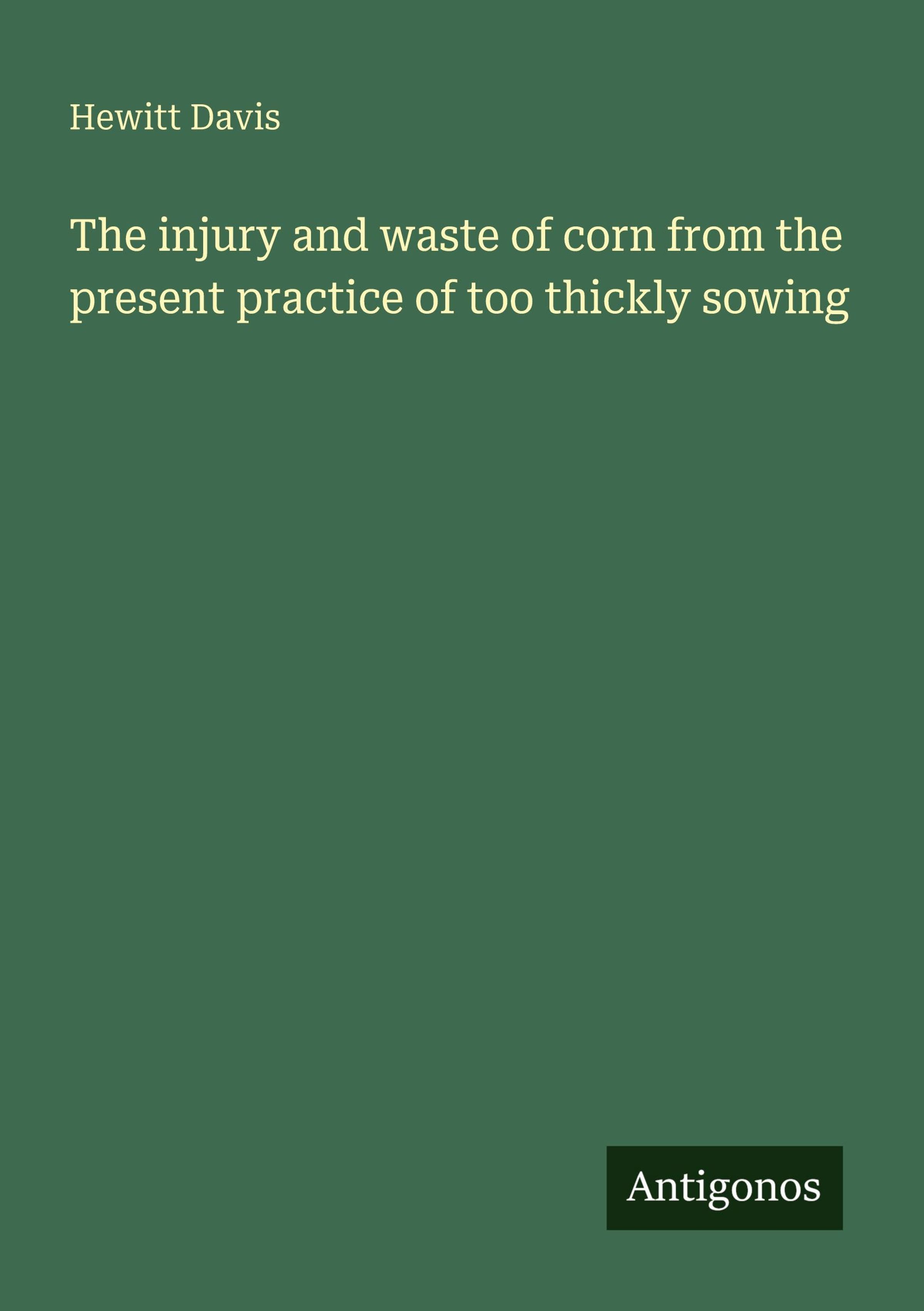 Hewitt Davis: The injury and waste of corn from the present practice of too thickly sowing, Kartoniert / Broschiert