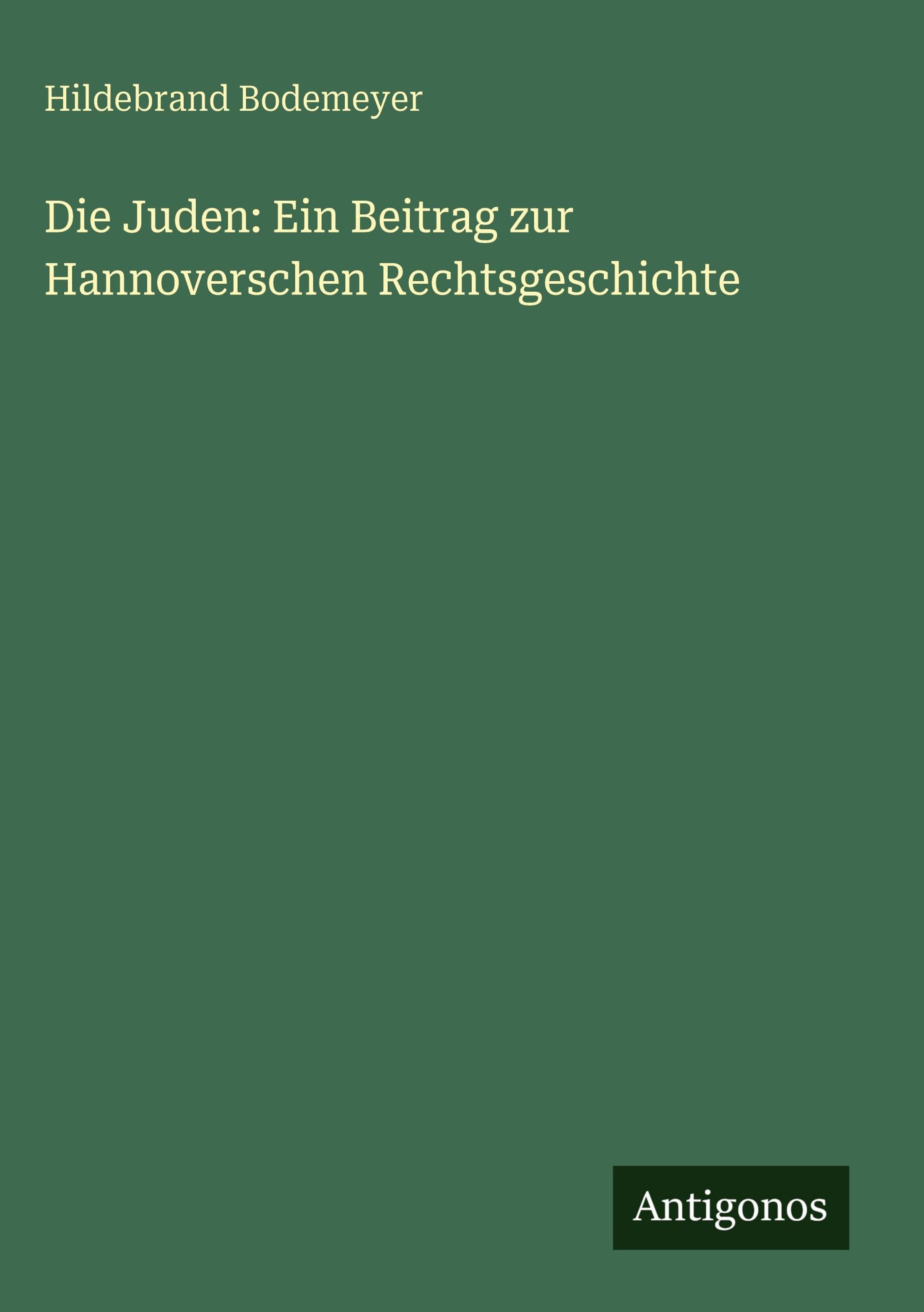 Hildebrand Bodemeyer: Die Juden: Ein Beitrag zur Hannoverschen Rechtsgeschichte, Gebunden