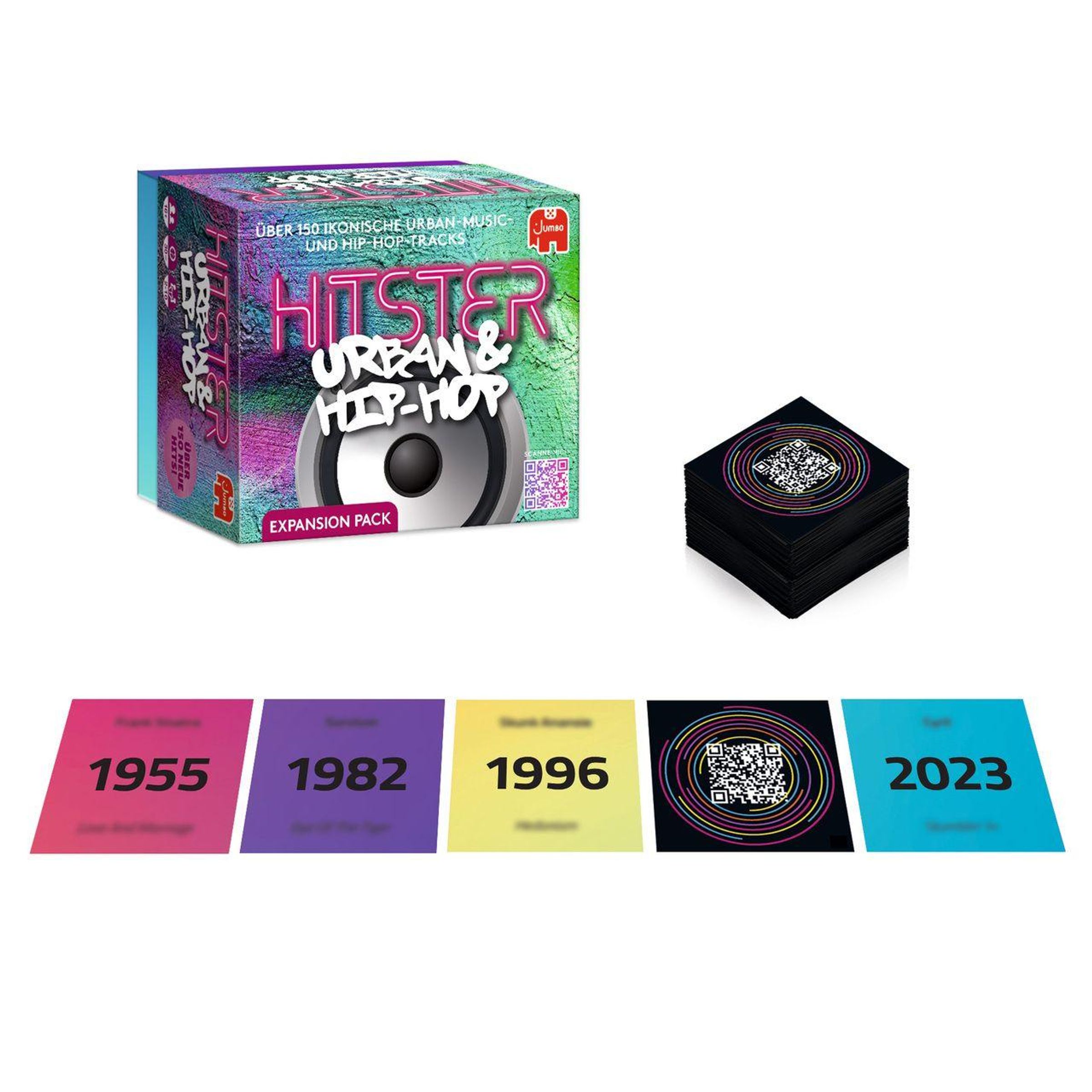 Mach dich bereit für den Beat mit HITSTER Urban & Hip-Hop. Diese Ausgabe ist eine Hommage an die größten Namen der Urban Music von klassischem Hip-Hop bis hin zu modernen Rap-Hymnen. Scanne eine Musikkarte mit der kostenlosen App, errate Erscheinungsjahr, Künstler und Titel des Songs und baue deine ultimative Hip-Hop-Timeline. Von den Krachern der goldenen Ära bis zu den aktuellen Chart-Hits Fordere deine Freunde heraus und zeige, wer das Spiel beherrscht. Der erste Spieler, der 10 Titel in der richtigen Reihenfolge anordnet, wird zum Hip Hop Hitster-Champion gekrönt