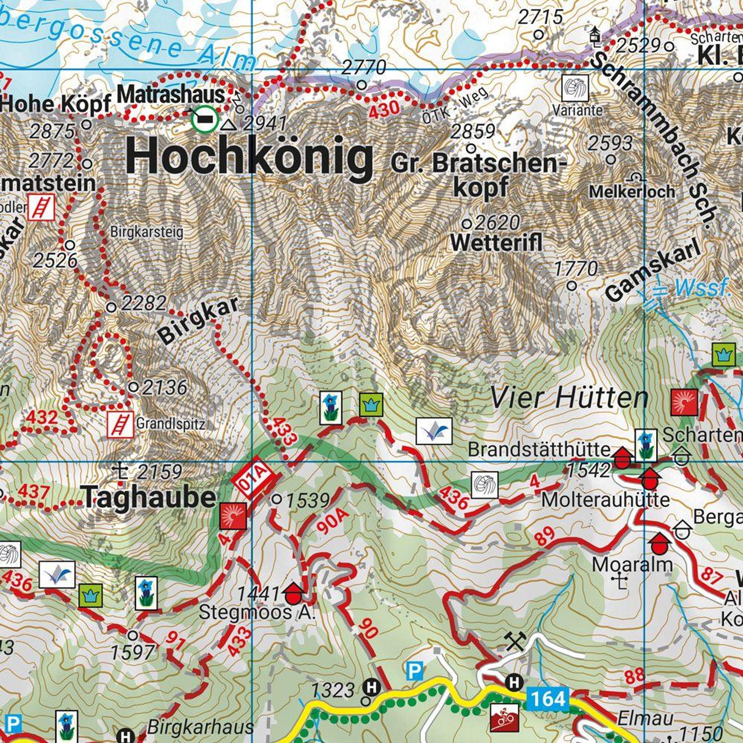 Die XL Wander-, Rad- und Freizeitkarte Hochkönig ist die ideale Karte für Wanderungen, Radtouren und Ausflüge in der Region. Mit der Wander- und Radkarte können Sie Ihre Touren ideal planen und sich über Sehenswürdigkeiten und Aussichtspunkte entlang der Route informieren.