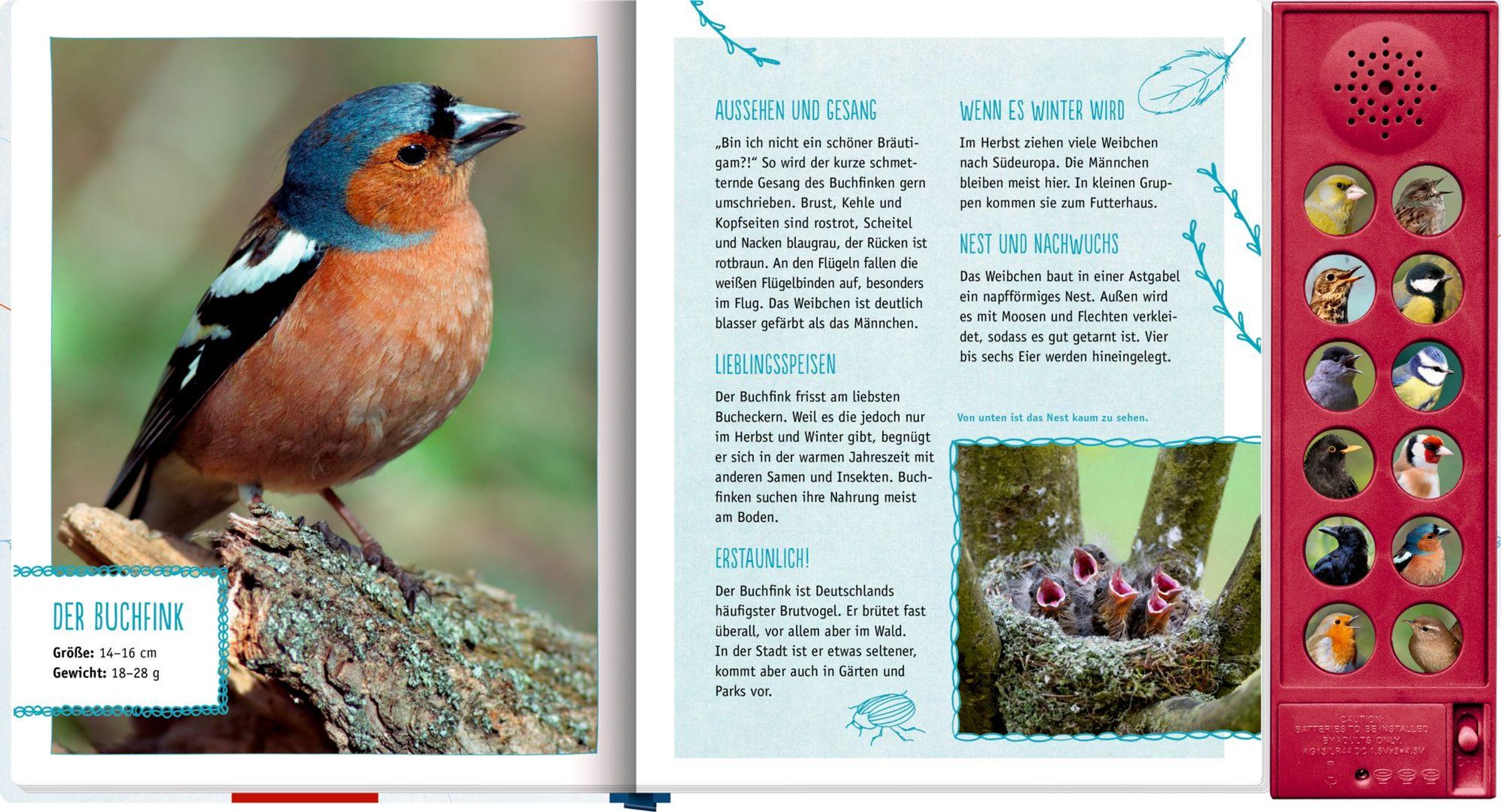 - Mit 12 echten Vogelstimmen