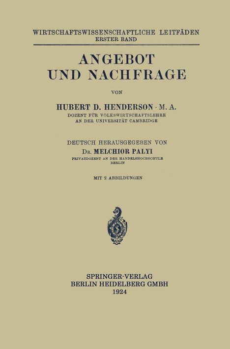 Melchior Palyi: Angebot und Nachfrage, Kartoniert / Broschiert