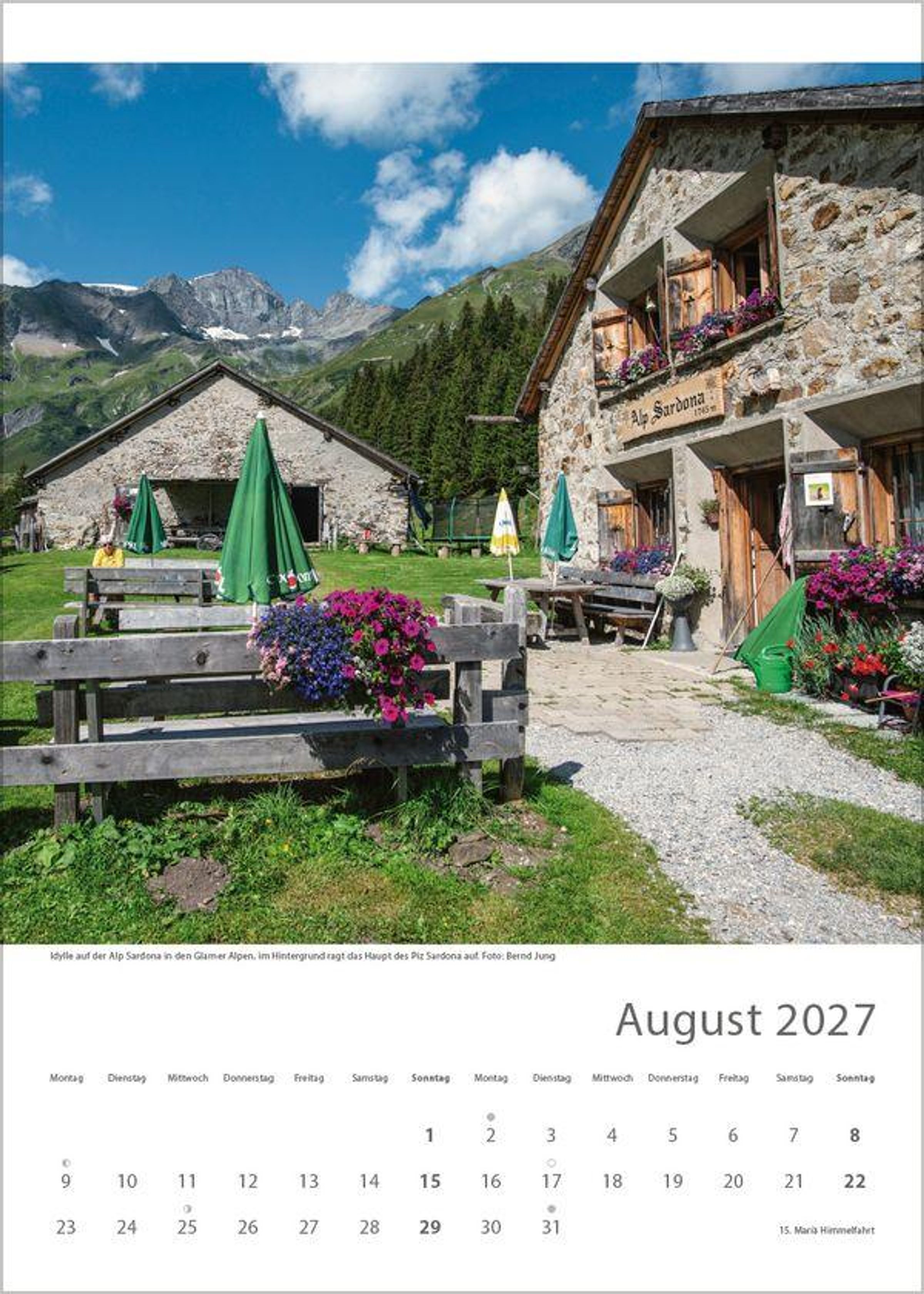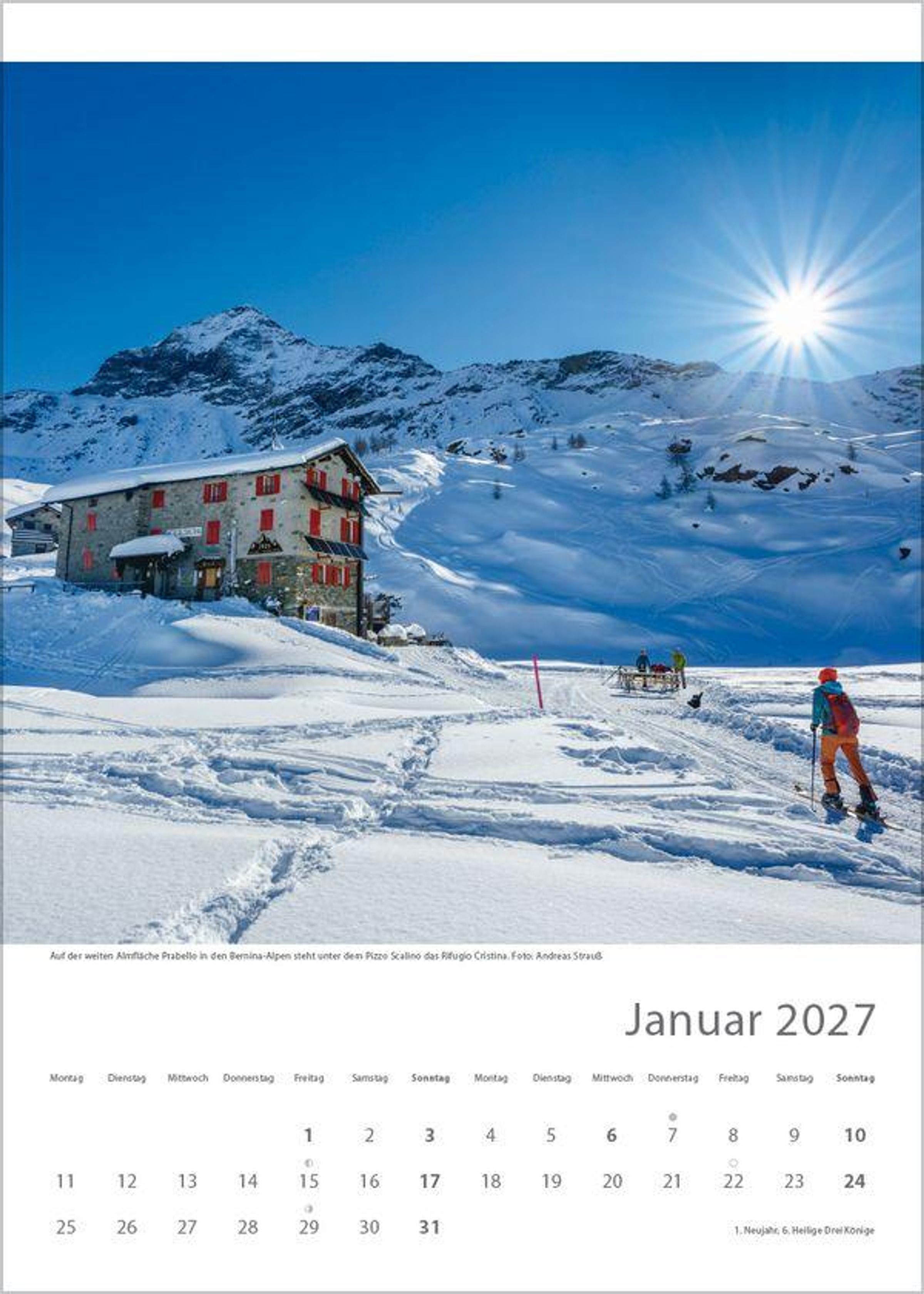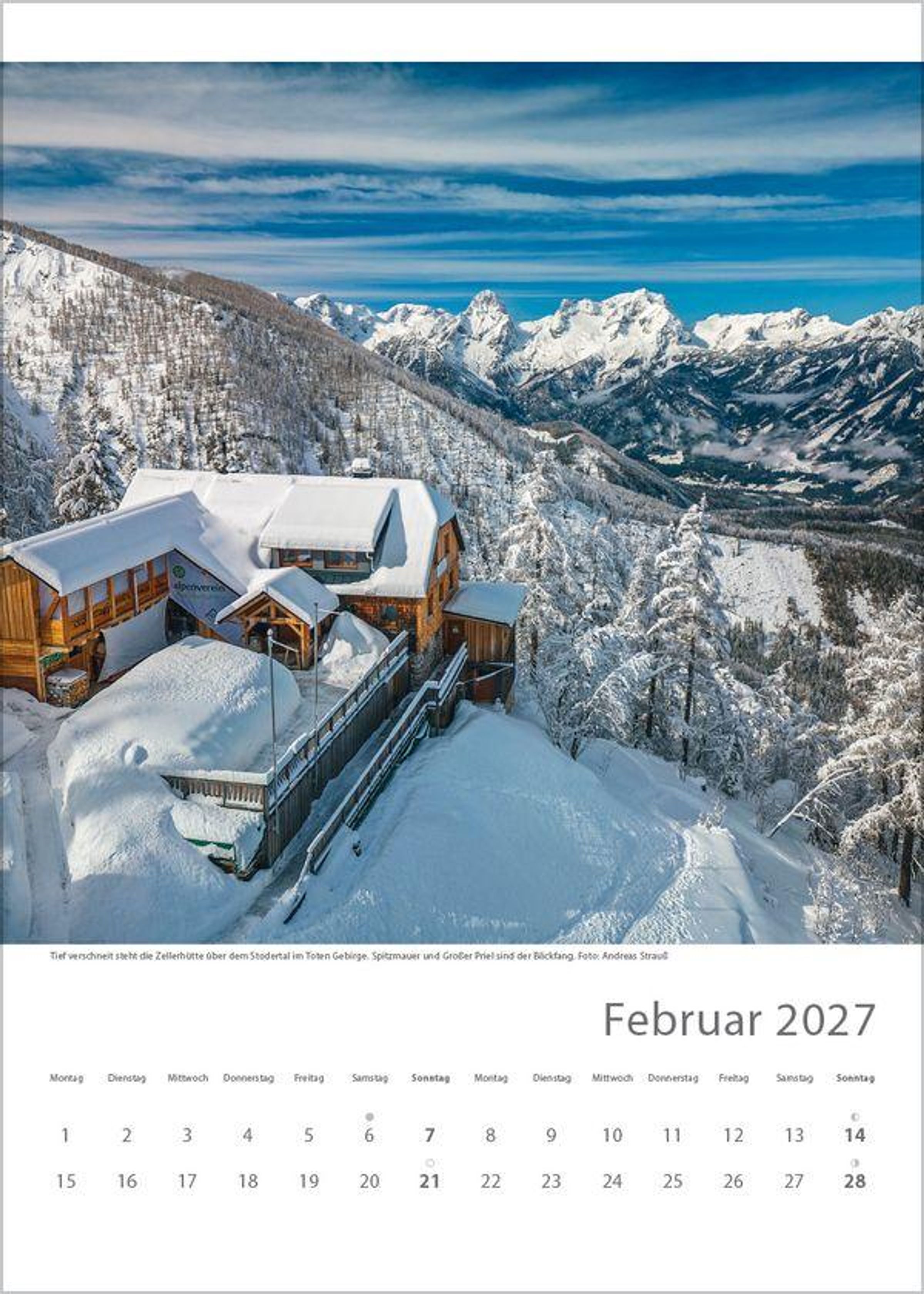 - Wandkalender mit Fotos von Hütten in den Alpen. Format 30,5 x 38 cm.