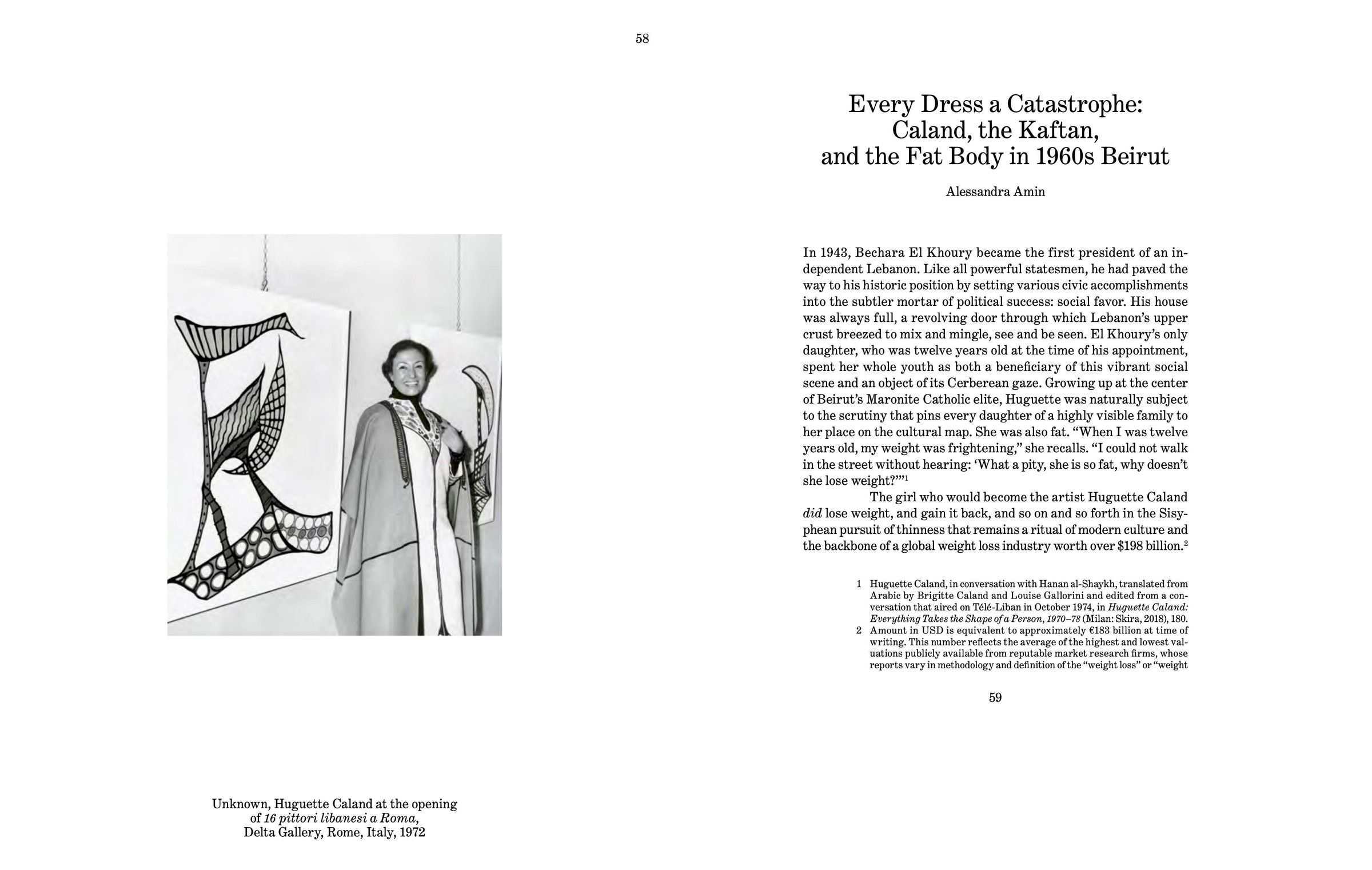 This book is published on the occasion of the exhibition Huguette Caland: A Life in a Few Lines, organized by the Museo Nacional Centro de Arte Reina Sofía, Madrid, in collaboration with Deichtorhallen Hamburg. The volume surveys Caland's oeuvre, gathering over three hundred works. The extensive essay section paints a detailed picture of the historical context in which her art flourished and retraces biographical lines. It includes contributions by the curator of the exhibition Hannah Feldman, as well as by Alessandra Amin, Alex Aubry, Maite Borjabad López-Pastor, Brigitte Caland, Rachel Haidu, Aram Moshayedi, Kaelen Wilson-Goldie, along with writings by the artist.