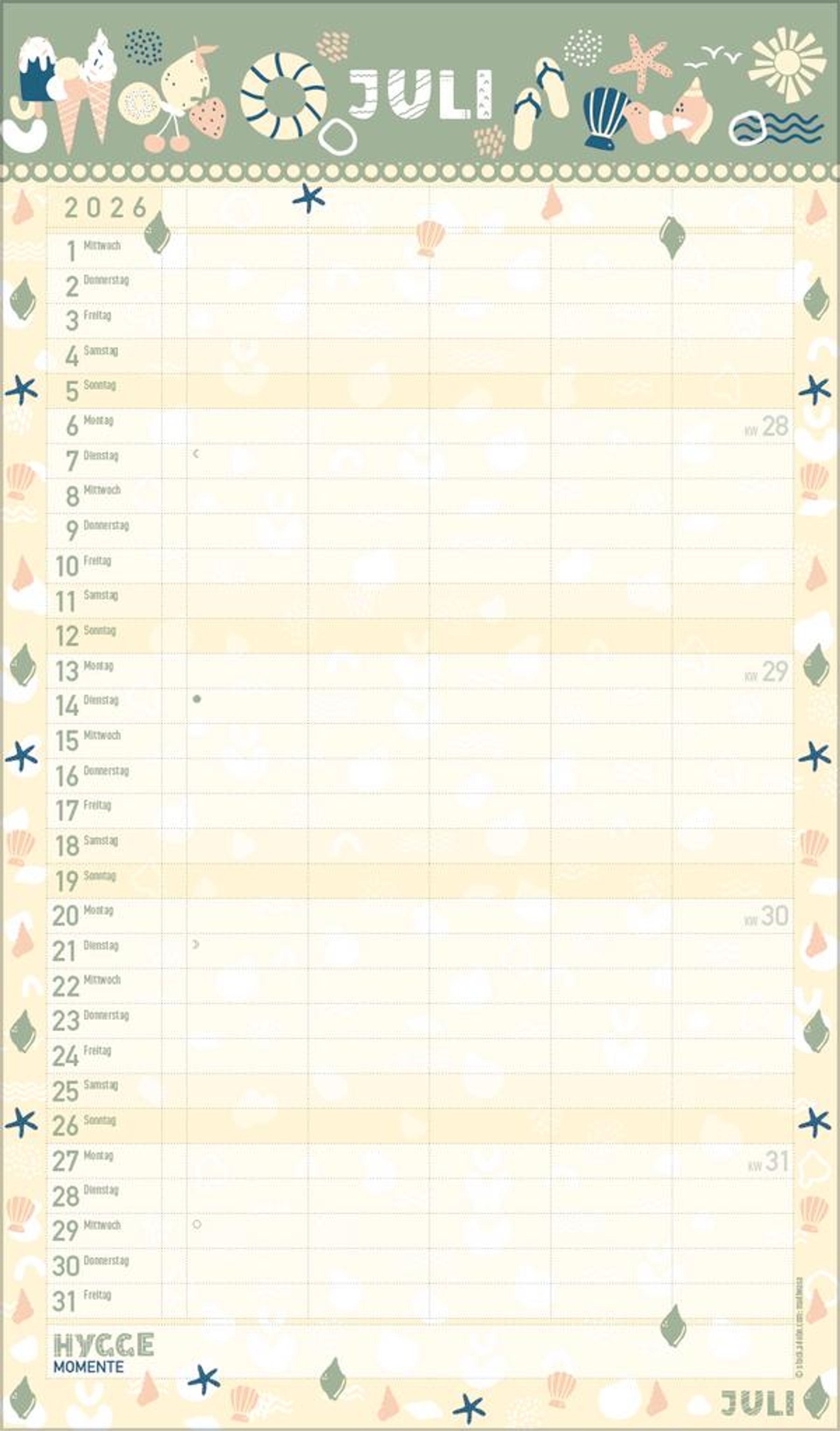 - Viel Platz für Eintragungen, ohne störende Bilder in den Spalten