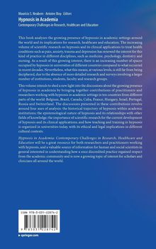 Hypnosis in Academia: Contemporary Challenges in Research, Healthcare and Education will be a great resource for both researchers and practitioners working with hypnosis, and a valuable source of information for human and social scientists in general interested in understanding how a once discredited practice regained respect from the academic community and is now a growing topic of interest for scholars and clinicians all around the world.