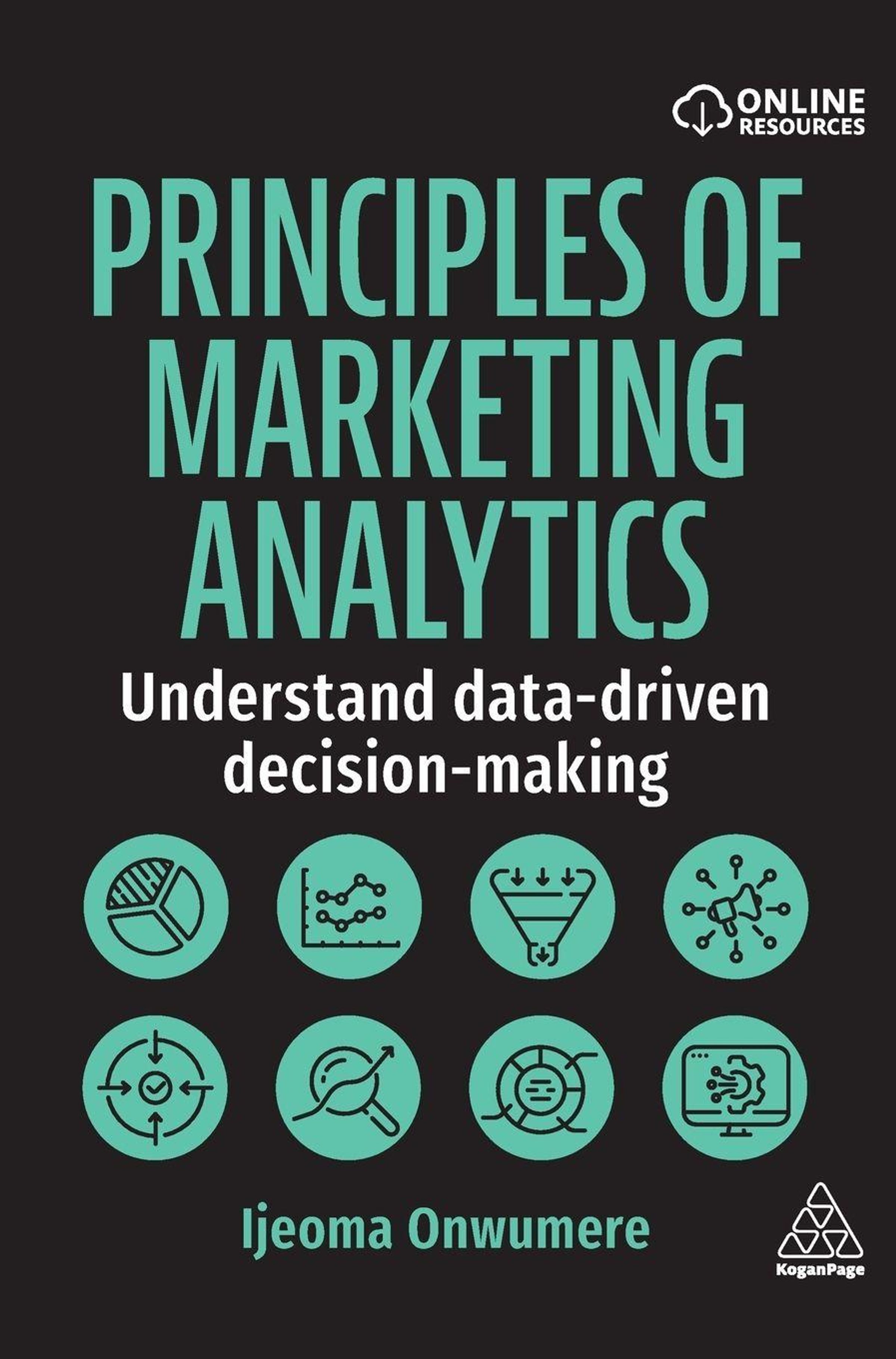 "PRINCIPLES OF MARKETING ANALYTICS: Understand data-driven decision-making. Ijeoma Onwumere. Oben rechts ist ein Logo. Unten sind sieben runde Diagrammsymbole.", Buch