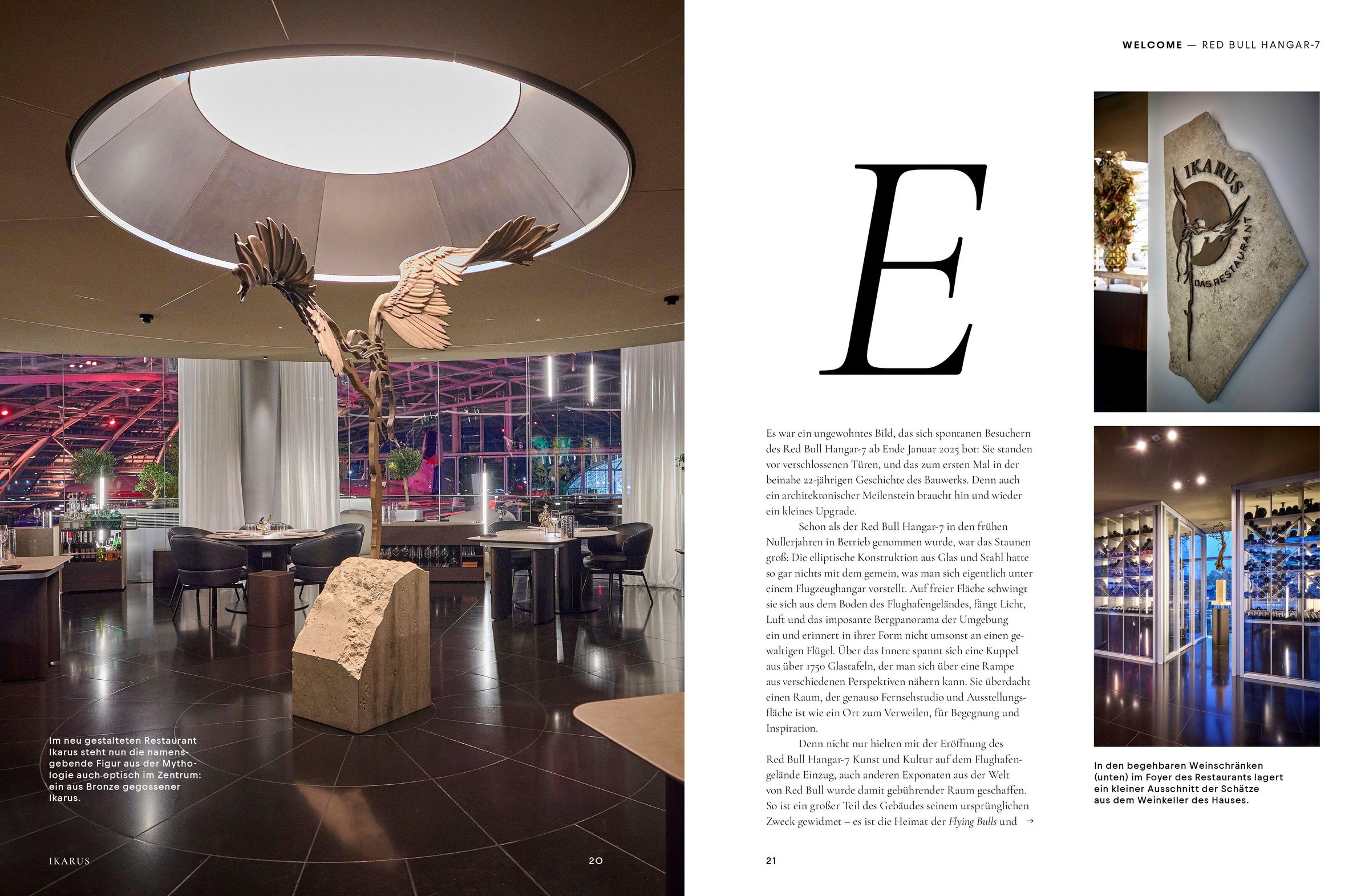 Die Bookazine-Reihe 'Ikarus. Die besten Köche der Welt zu Gast in¿Salzburg' dokumentiert diese Begegnungen der Geschmackswelten sowie die gemeinsam entwickelten Rezepte. Dieses Jahr präsentiert sie sich in neuem, ganz besonderem Gewand. Passend zum umfangreichen Makeover des Red Bull Hangar-7 und des Restaurant Ikarus wurden auch das Bookazine und die digitale 'Ikarus Experience' rundum neugestaltet.