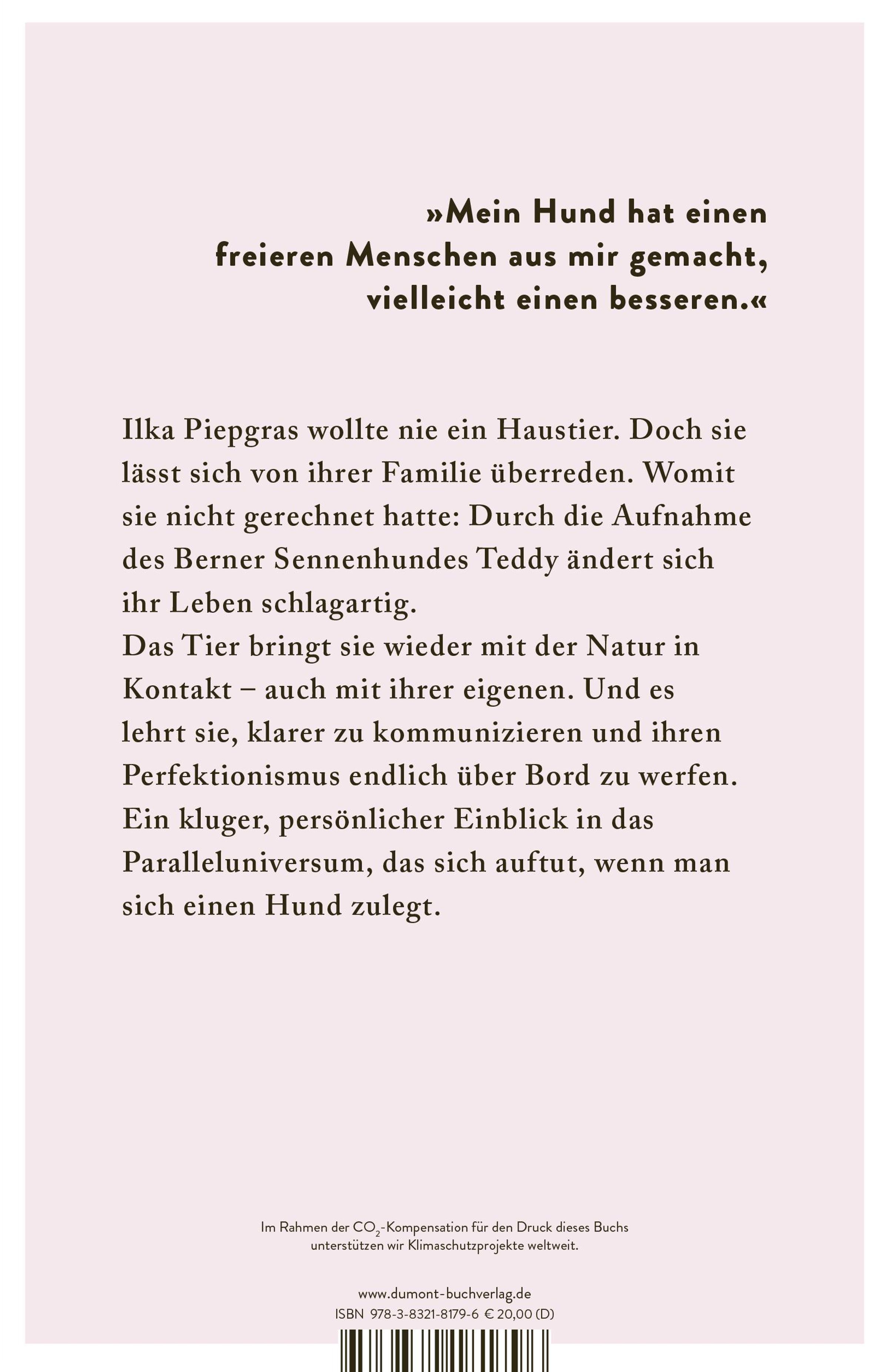 Ilka Piepgras nahm Natur nur als Kulisse für Erholung war. Doch mit der Aufnahme des Berner Sennenhundes Teddy ändert sich alles, das Tier macht aus ihr einen anderen Menschen. Plötzlich packt sie die Sehnsucht nach der Natur mit ungeahnter Wucht. Sie spürt auf ihren langen Spaziergängen mit Teddy durch den Berliner Stadtwald oder die Uckermark, dass auch sie Teil davon ist. Aber die Autorin plagen auch Selbstzweifel, denn Teddy ist wild und ungestüm. Wie soll man einen Hund gesellschaftsfähig machen, ohne ihm seine Natur und Instinkte abzusprechen? >Das Tier meines Lebens< ist ein intelligentes, wunderbar erzähltes Buch über Hunde, Hundeerziehung und das Verhältnis zwischen Mensch und Hund.