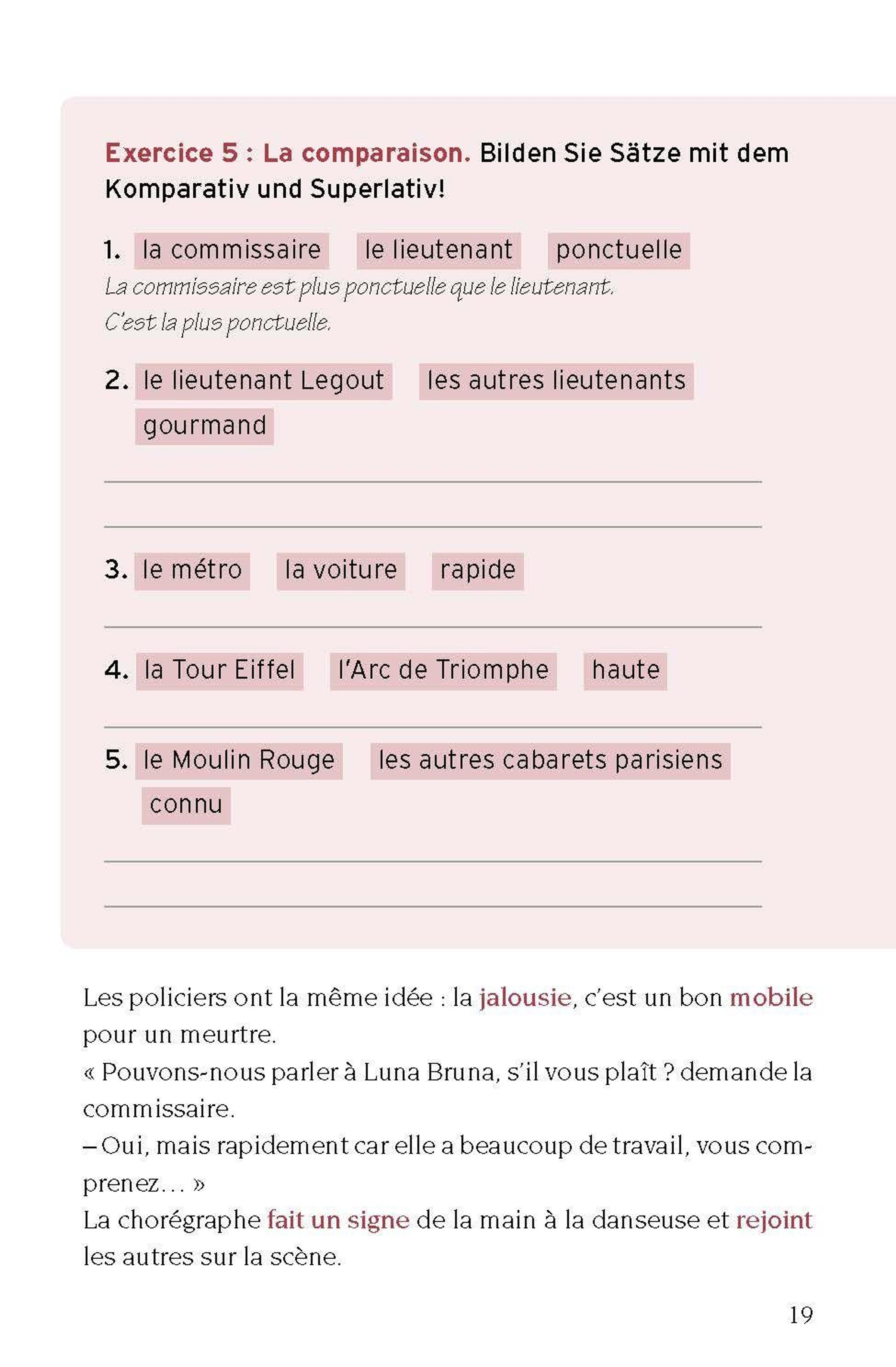 - Infokästen zu Sprache und Grammatik: Zusätzliche Informationen, Tipps und Wissenswertes zu Sprache und Grammatik ergänzen die Kriminalgeschichten und erleichtern das Lernen.